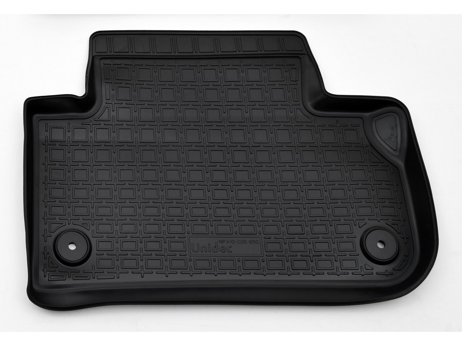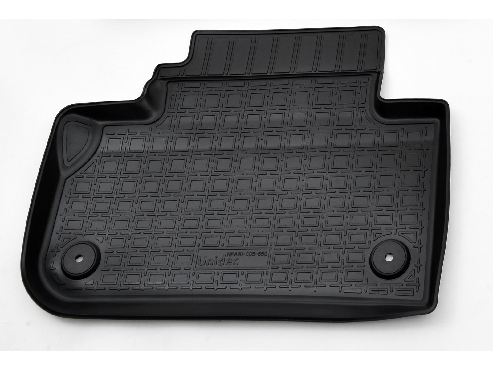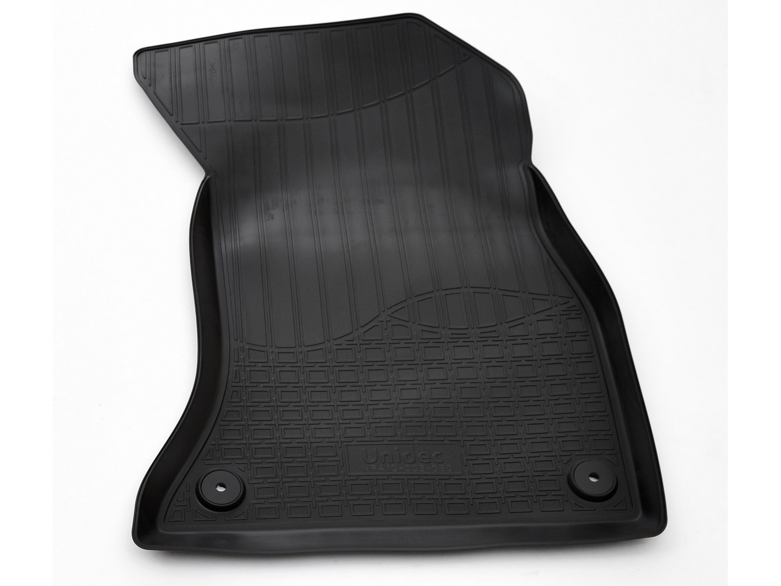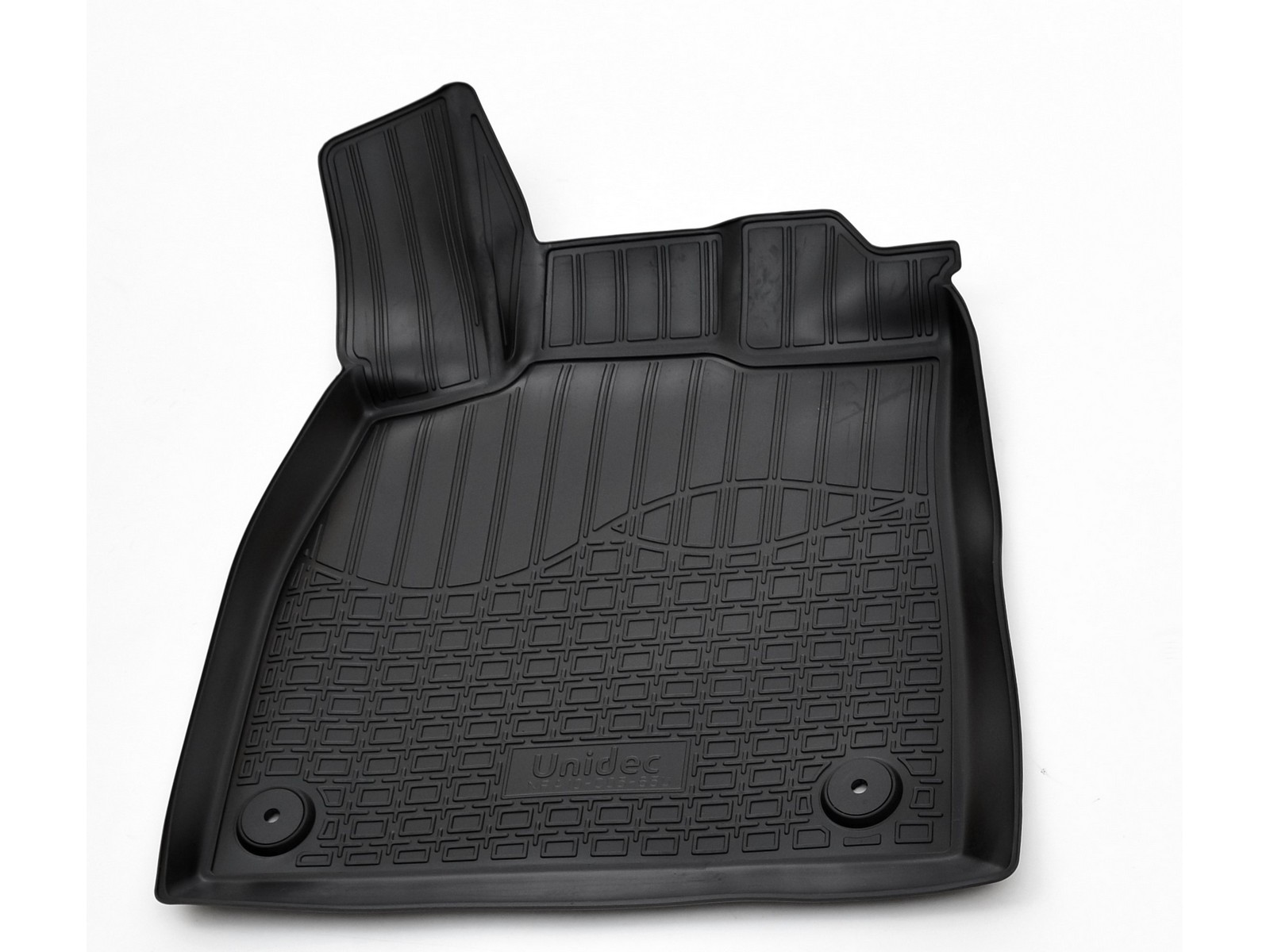 Водительский коврик имеет специальный язычок (подпятник), который полностью закрывает площадку отдыха левой ноги водителя. Так же этот элемент, в случае вождения автомобиля на каблуках, защищает коврик от протирания. Полиуретановые 3D ковры «Норпласт» отличаются от обычных тем, что этот подпятник не отделен вырезом под площадку для отдыха ноги.