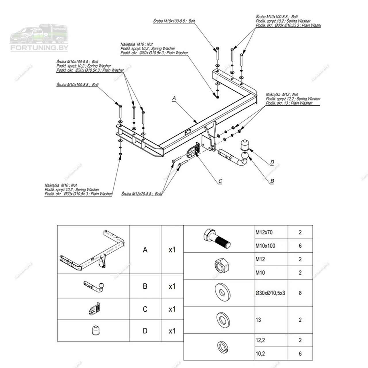 Диаметр шара крюка, 50 мм — стандартный размер тягового шара, совместимый с большинством прицепов и аксессуаров.