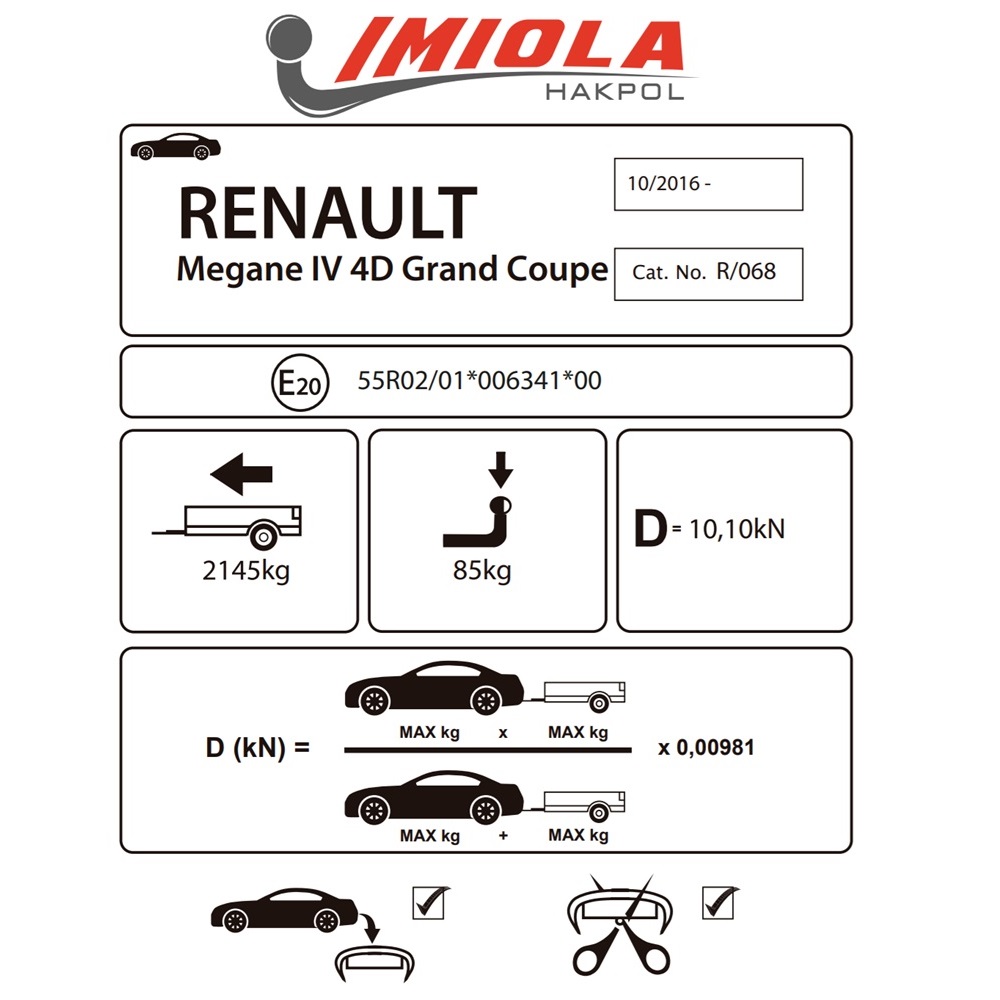 Максимальный допустимый вес прицепа, который можно буксировать с данным фаркопом.