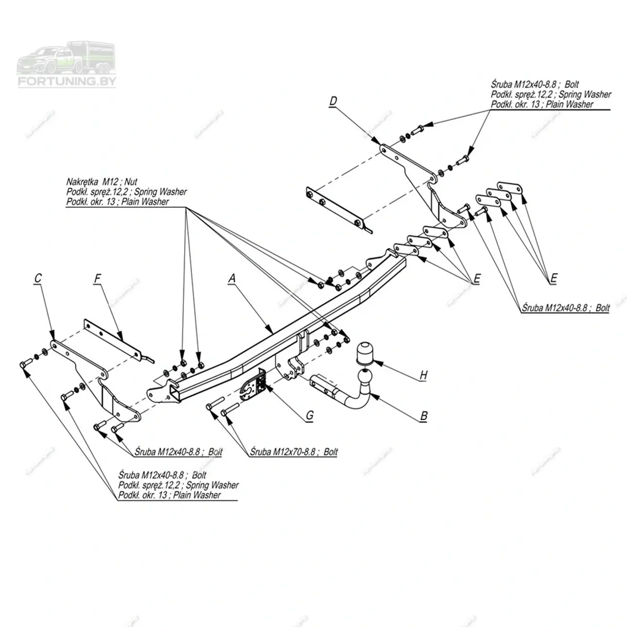 Диаметр шара крюка, 50 мм — стандартный размер тягового шара, совместимый с большинством прицепов и аксессуаров.