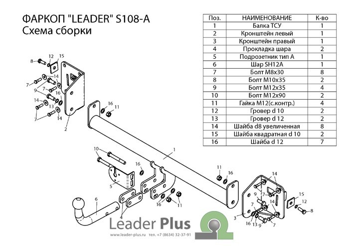 Данный фаркоп состоит из 3-х элементов – силовая балка, крюк, электрика - которые крепятся к элементам кузова или раме. Балка изготовлена из толстостенного металла и покрыта порошковой краской. Фаркоп Лидер-Плюс принадлежит к классу условно-съемных. Это значит, что при необходимости и наличии специального инструмента, крюк можно отсоединить от балки, открутив два крепежных болта.