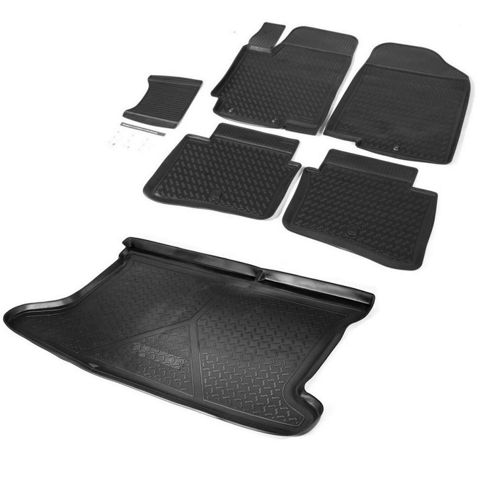 - Коврики салона Rival для Hyundai Solaris I седан, хэтчбек 2010-2017, полиуретан, без крепежа, с перемычкой, 5 шт., 12305001