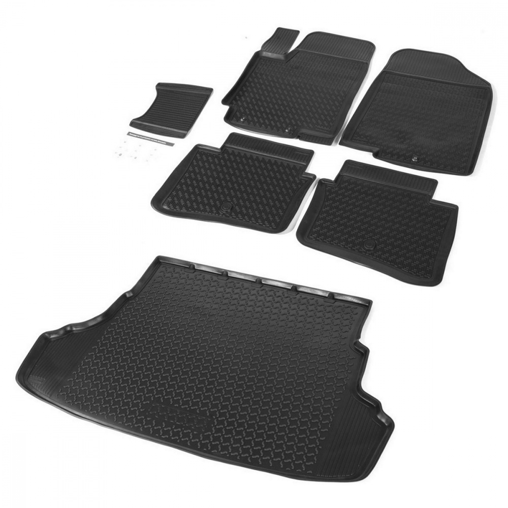 - Коврики салона Rival для Hyundai Solaris I седан, хэтчбек 2010-2017, полиуретан, без крепежа, с перемычкой, 5 шт., 12305001