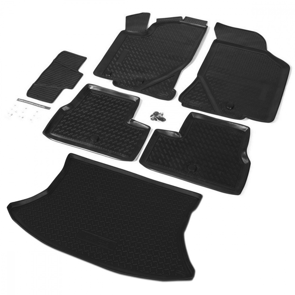 - Коврики салона Rival для Lada Kalina I, II седан, хэтчбек, универсал, универсал Cross 2004-2018, полиуретан, с крепежом, с перемычкой, 5 шт., 16002001