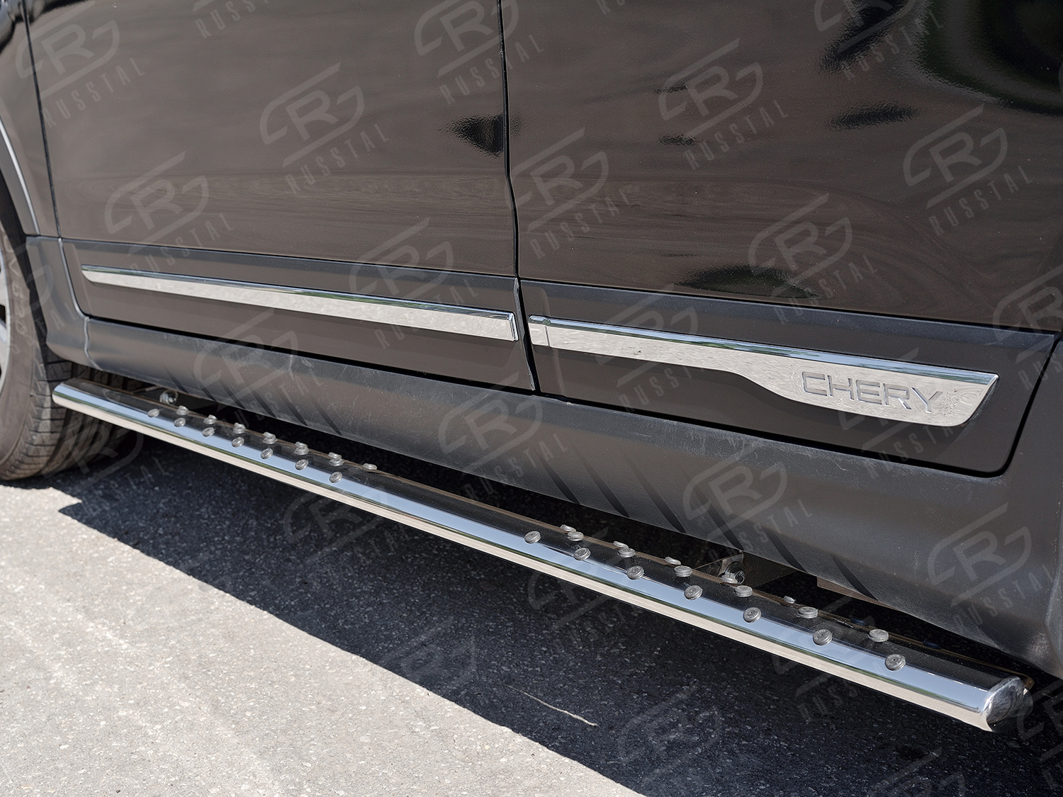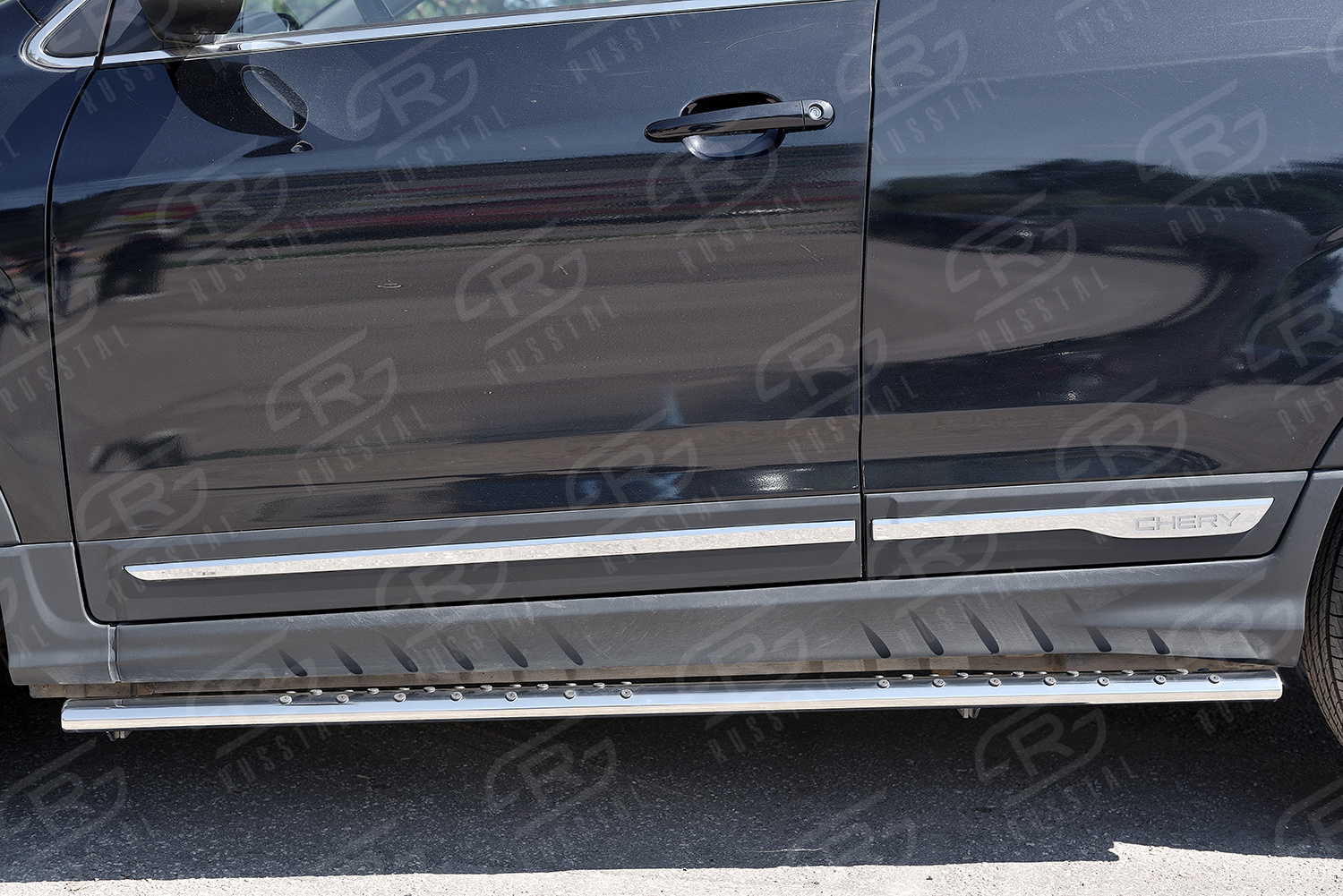 CHERY TIGGO 5 2014 Пороги труба d75х42 овал с проступью CT5O-002265 производится из итальянской нержавеющей высококачественной полированной стали марки AISI 304. Идеально подходит по заводским параметрам, и устанавливается без дополнительных изменений в кузове. Вся продукция сертифицирована. Мы производим аксессуары с 2006 года. В распоряжении компании имеются собственные производственные площадки, поэтому вся работа производится без подрядчиков и посредников.
