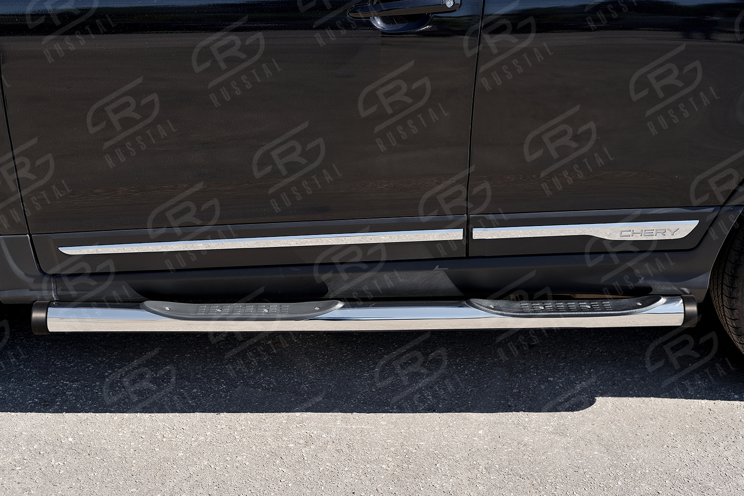 CHERY TIGGO 5 2014 Пороги труба d76 с накладкой (вариант 2) CT5T-0022632 производится из итальянской нержавеющей высококачественной полированной стали марки AISI 304. Идеально подходит по заводским параметрам, и устанавливается без дополнительных изменений в кузове. Вся продукция сертифицирована. Мы производим аксессуары с 2006 года. В распоряжении компании имеются собственные производственные площадки, поэтому вся работа производится без подрядчиков и посредников.