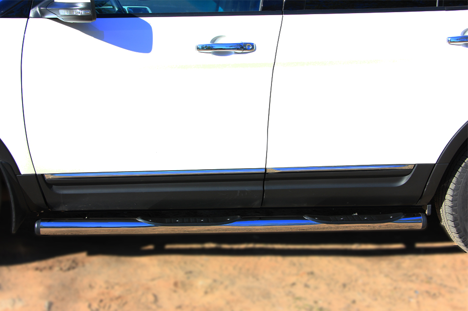 Ford Explorer 2012-2016 Пороги труба d76 с накладкой (вариант 2) FET-0013132 производится из итальянской нержавеющей высококачественной полированной стали марки AISI 304. Идеально подходит по заводским параметрам, и устанавливается без дополнительных изменений в кузове. Вся продукция сертифицирована. Мы производим аксессуары с 2006 года. В распоряжении компании имеются собственные производственные площадки, поэтому вся работа производится без подрядчиков и посредников.