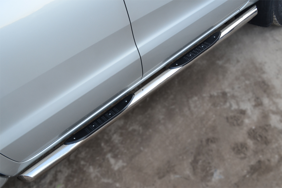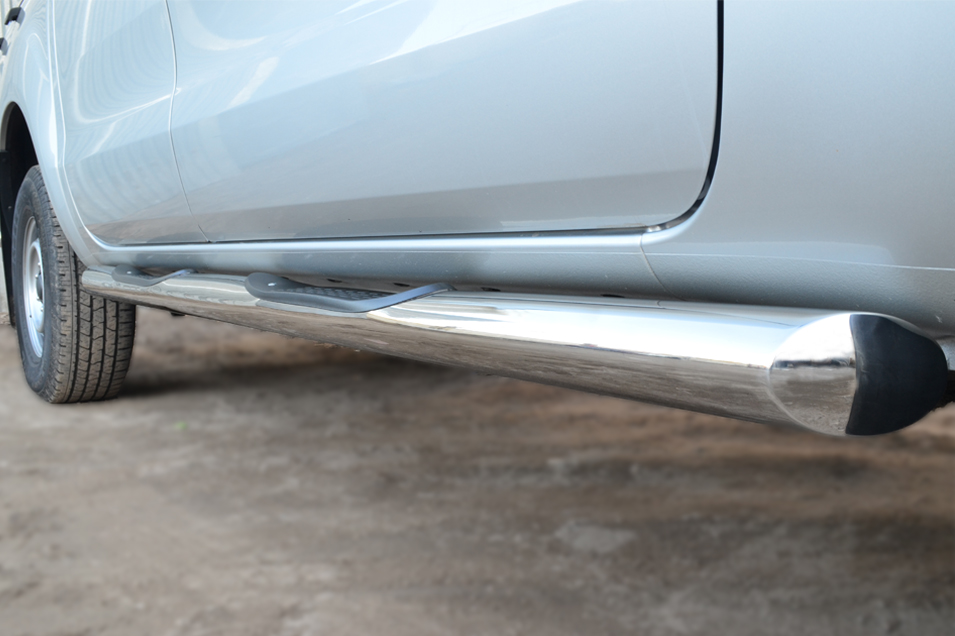 Ford Ranger 2012 Пороги труба d76 с накладкой (вариант 1) FRT-0012981 производится из итальянской нержавеющей высококачественной полированной стали марки AISI 304. Идеально подходит по заводским параметрам, и устанавливается без дополнительных изменений в кузове. Вся продукция сертифицирована. Мы производим аксессуары с 2006 года. В распоряжении компании имеются собственные производственные площадки, поэтому вся работа производится без подрядчиков и посредников.