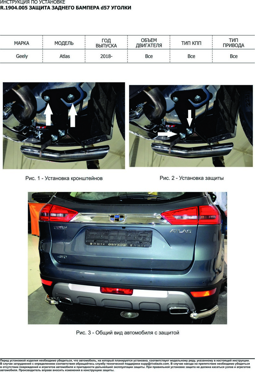 Фото Защита заднего бампера d57 уголки Geely Atlas 2018-