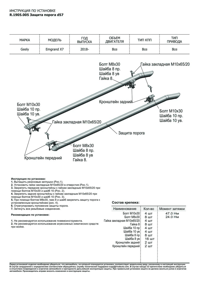 Фото Защита порогов d57 Geely Emgrand X7 2018-
