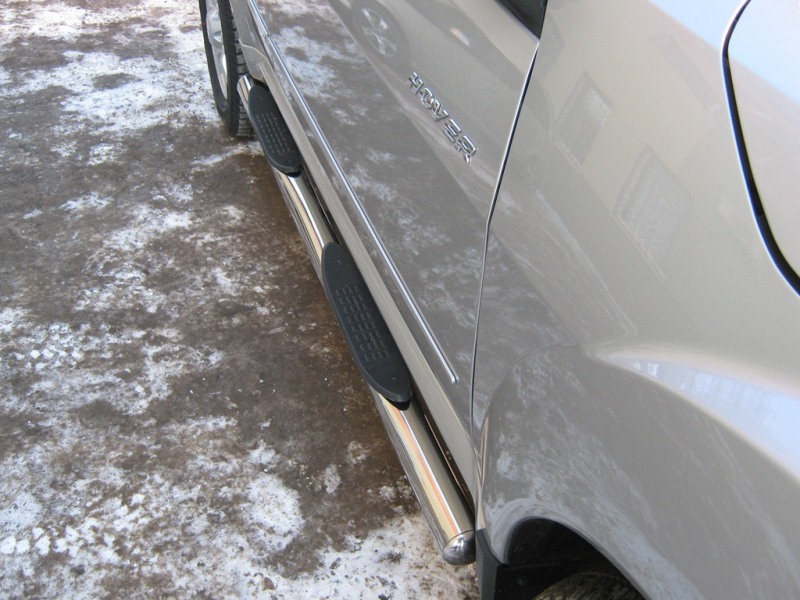 GREAT WALL HOVER H3 2010-2013 Пороги труба d76 с накладками (вариант 3) GH3T-0003513 производится из итальянской нержавеющей высококачественной полированной стали марки AISI 304. Идеально подходит по заводским параметрам, и устанавливается без дополнительных изменений в кузове. Вся продукция сертифицирована. Мы производим аксессуары с 2006 года. В распоряжении компании имеются собственные производственные площадки, поэтому вся работа производится без подрядчиков и посредников.