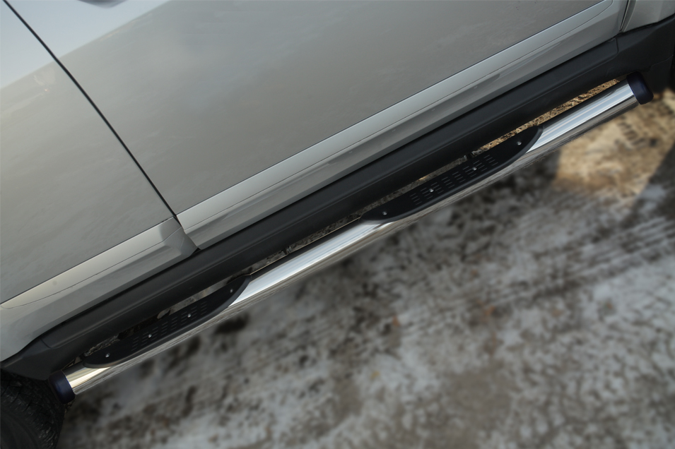 Great Wall Hover H3 2014- Пороги труба d76 с накладкой (вариант 2) GWH3T-001943 производится из итальянской нержавеющей высококачественной полированной стали марки AISI 304. Идеально подходит по заводским параметрам, и устанавливается без дополнительных изменений в кузове. Вся продукция сертифицирована. Мы производим аксессуары с 2006 года. В распоряжении компании имеются собственные производственные площадки, поэтому вся работа производится без подрядчиков и посредников.