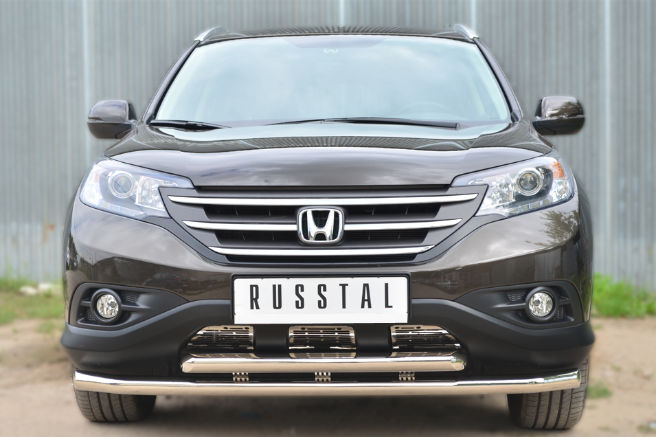 Honda CR-V 2.4 2013-2015 Защита переднего бампера d63 (секции) d63 (дуга) декор-паз HVZ-001765 производится из итальянской нержавеющей высококачественной полированной стали марки AISI 304. Идеально подходит по заводским параметрам, и устанавливается без дополнительных изменений в кузове. Вся продукция сертифицирована. Мы производим аксессуары с 2006 года. В распоряжении компании имеются собственные производственные площадки, поэтому вся работа производится без подрядчиков и посредников.