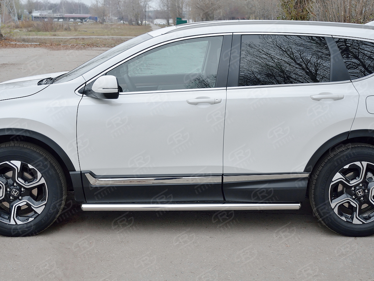 HONDA CR-V 2017- Пороги труба d63 (вариант 3) HCRT-0028333 производится из итальянской нержавеющей высококачественной полированной стали марки AISI 304. Идеально подходит по заводским параметрам, и устанавливается без дополнительных изменений в кузове. Вся продукция сертифицирована. Мы производим аксессуары с 2006 года. В распоряжении компании имеются собственные производственные площадки, поэтому вся работа производится без подрядчиков и посредников.