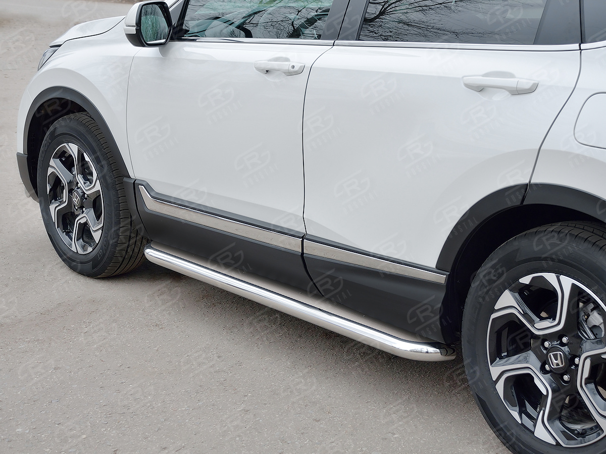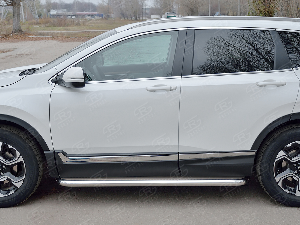 HONDA CR-V 2017- Пороги труба d63 с листом (Лист нерж, проф. нерж) (вариант 3) HCRL-0028303 производится из итальянской нержавеющей высококачественной полированной стали марки AISI 304. Идеально подходит по заводским параметрам, и устанавливается без дополнительных изменений в кузове. Вся продукция сертифицирована. Мы производим аксессуары с 2006 года. В распоряжении компании имеются собственные производственные площадки, поэтому вся работа производится без подрядчиков и посредников.