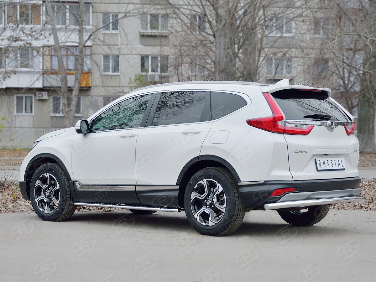 HONDA CR-V 2017- Защита заднего бампера d63 секции HCRZ-002836 производится из итальянской нержавеющей высококачественной полированной стали марки AISI 304. Идеально подходит по заводским параметрам, и устанавливается без дополнительных изменений в кузове. Вся продукция сертифицирована. Мы производим аксессуары с 2006 года. В распоряжении компании имеются собственные производственные площадки, поэтому вся работа производится без подрядчиков и посредников.