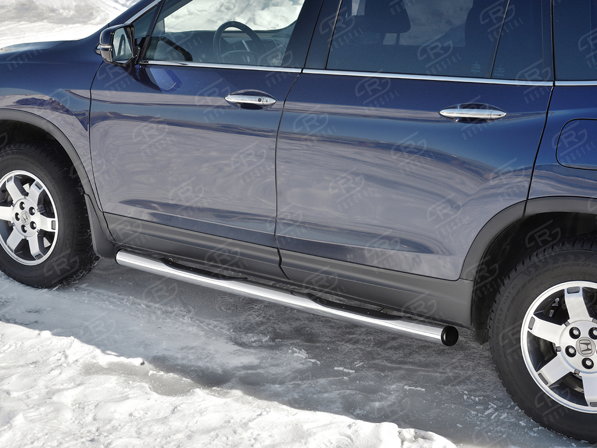 HONDA PILOT 2016- Пороги труба d76 с накладкой (вариант 2) HPT-0029232 производится из итальянской нержавеющей высококачественной полированной стали марки AISI 304. Идеально подходит по заводским параметрам, и устанавливается без дополнительных изменений в кузове. Вся продукция сертифицирована. Мы производим аксессуары с 2006 года. В распоряжении компании имеются собственные производственные площадки, поэтому вся работа производится без подрядчиков и посредников.