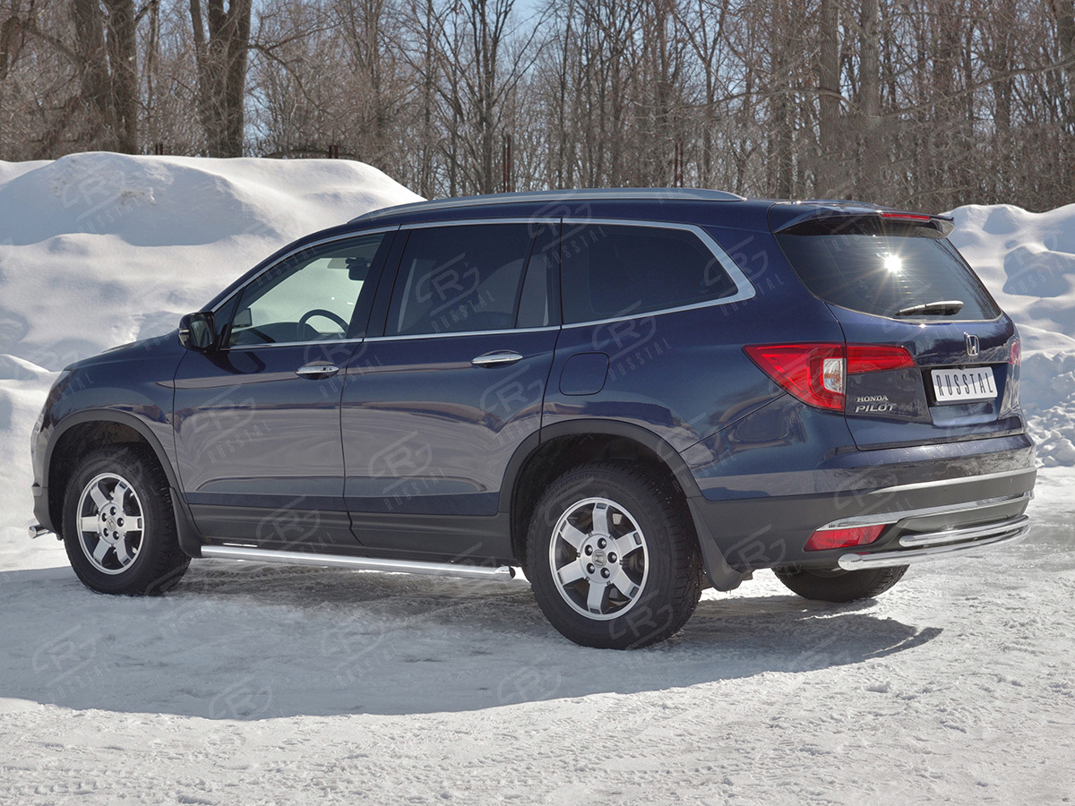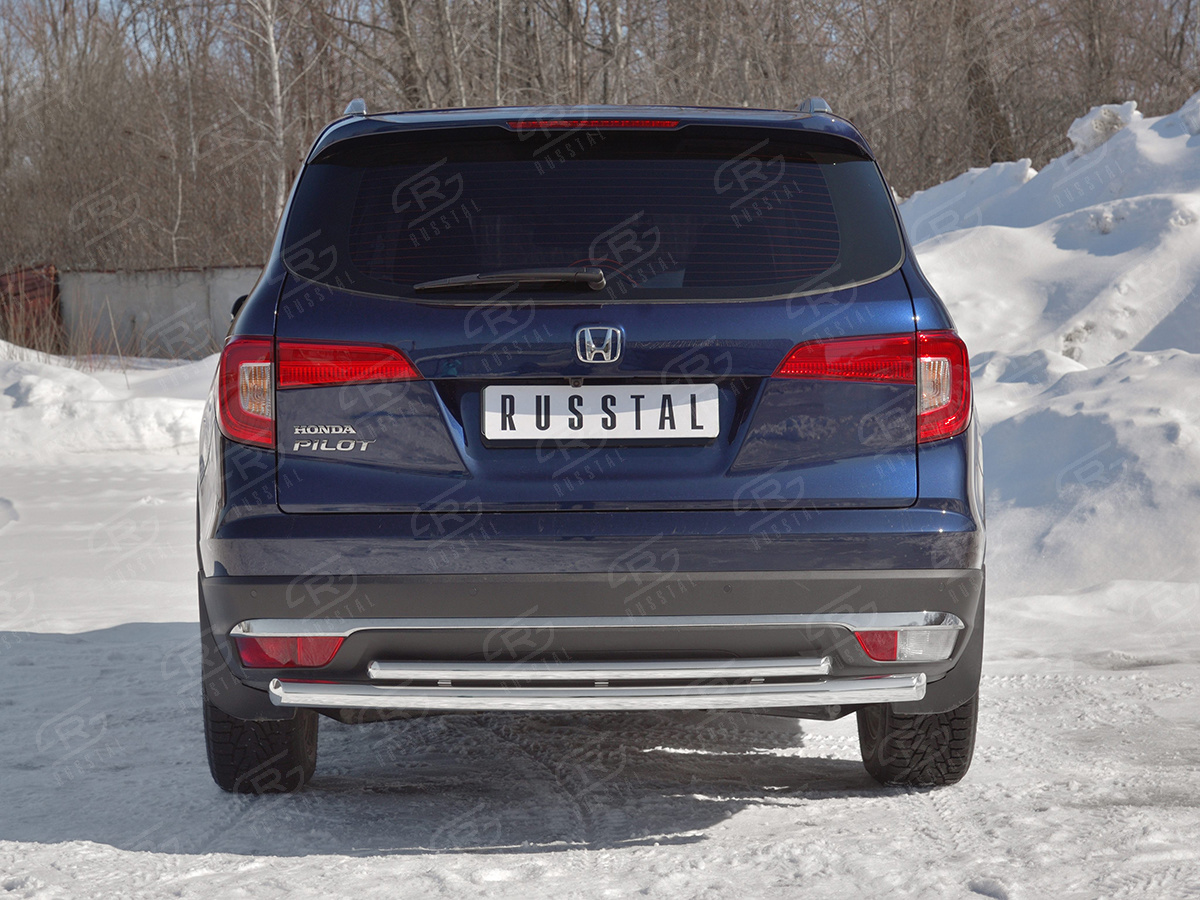 HONDA PILOT 2016- Защита заднего бампера d63 дуга-d42 дуга HPZ-002926 производится из итальянской нержавеющей высококачественной полированной стали марки AISI 304. Идеально подходит по заводским параметрам, и устанавливается без дополнительных изменений в кузове. Вся продукция сертифицирована. Мы производим аксессуары с 2006 года. В распоряжении компании имеются собственные производственные площадки, поэтому вся работа производится без подрядчиков и посредников.