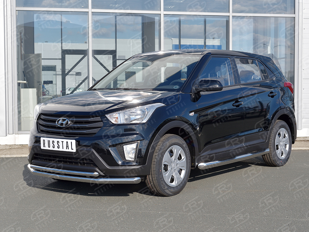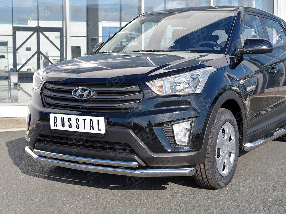 HYUNDAI CRETA 2016- Защита переднего бампера d63 секция-d42 дуга HCRZ-002418 производится из итальянской нержавеющей высококачественной полированной стали марки AISI 304. Идеально подходит по заводским параметрам, и устанавливается без дополнительных изменений в кузове. Вся продукция сертифицирована. Мы производим аксессуары с 2006 года. В распоряжении компании имеются собственные производственные площадки, поэтому вся работа производится без подрядчиков и посредников.