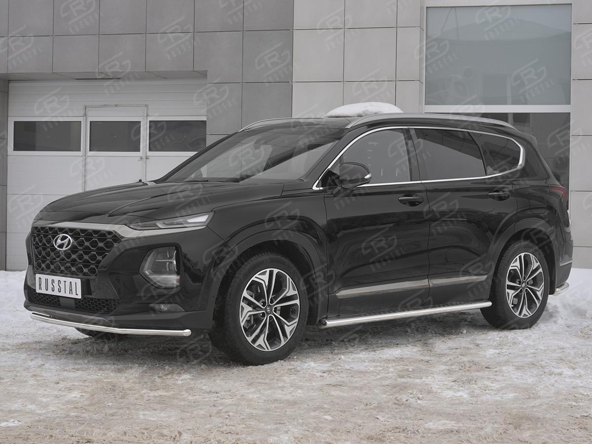 HYUNDAI SANTA FE 2018- Защита переднего бампера d42 секции HSFZ-003165 производится из итальянской нержавеющей высококачественной полированной стали марки AISI 304. Идеально подходит по заводским параметрам, и устанавливается без дополнительных изменений в кузове. Вся продукция сертифицирована. Мы производим аксессуары с 2006 года. В распоряжении компании имеются собственные производственные площадки, поэтому вся работа производится без подрядчиков и посредников.