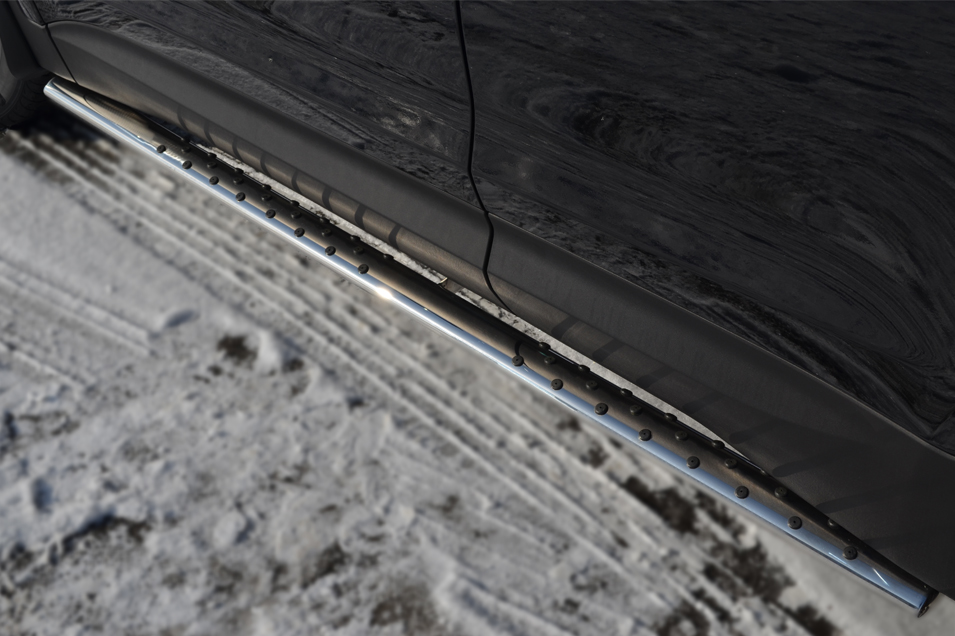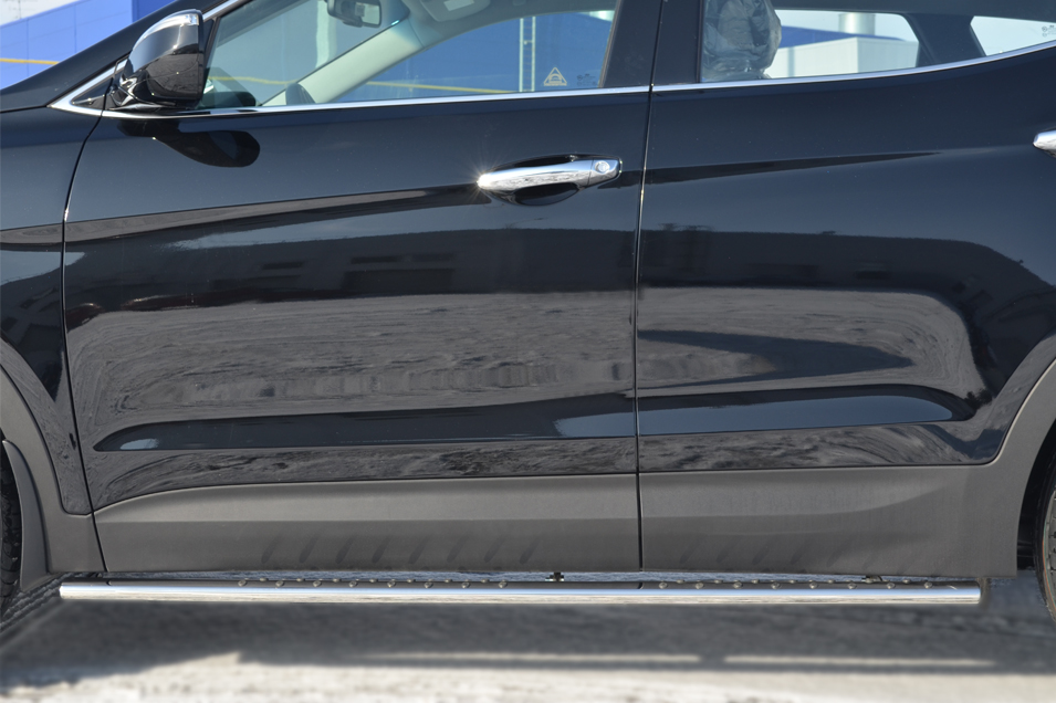 Hyundai Santa Fe 2012-2015 Пороги труба 75х42 овал с проступью HSFO-001223 производится из итальянской нержавеющей высококачественной полированной стали марки AISI 304. Идеально подходит по заводским параметрам, и устанавливается без дополнительных изменений в кузове. Вся продукция сертифицирована. Мы производим аксессуары с 2006 года. В распоряжении компании имеются собственные производственные площадки, поэтому вся работа производится без подрядчиков и посредников.