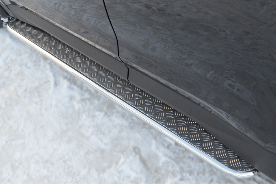 Hyundai Santa Fe 2012-2015 Пороги труба d42 с листом (Лист алюм, проф. нерж) (Вариант 1) HSFL-001221 производится из итальянской нержавеющей высококачественной полированной стали марки AISI 304. Идеально подходит по заводским параметрам, и устанавливается без дополнительных изменений в кузове. Вся продукция сертифицирована. Мы производим аксессуары с 2006 года. В распоряжении компании имеются собственные производственные площадки, поэтому вся работа производится без подрядчиков и посредников.