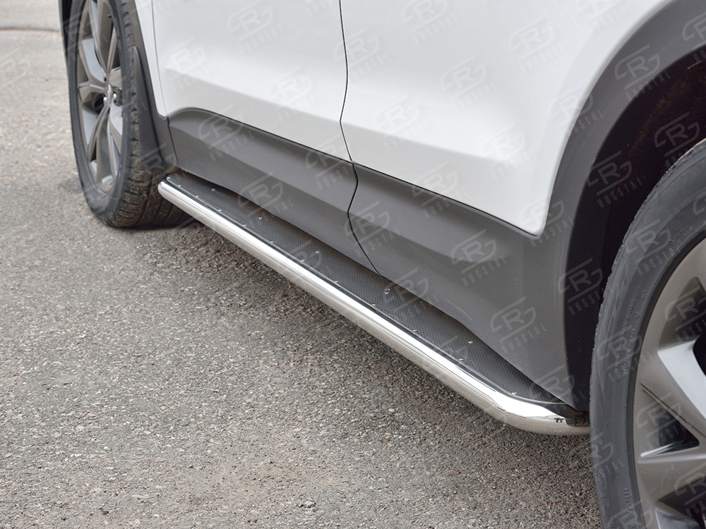 HYUNDAI Santa Fe Premium 2015-2017 Пороги труба d42 С листом (Лист нерж, проф. нерж)(Вариант3) HSFPL-0024483 производится из итальянской нержавеющей высококачественной полированной стали марки AISI 304. Идеально подходит по заводским параметрам, и устанавливается без дополнительных изменений в кузове. Вся продукция сертифицирована. Мы производим аксессуары с 2006 года. В распоряжении компании имеются собственные производственные площадки, поэтому вся работа производится без подрядчиков и посредников.