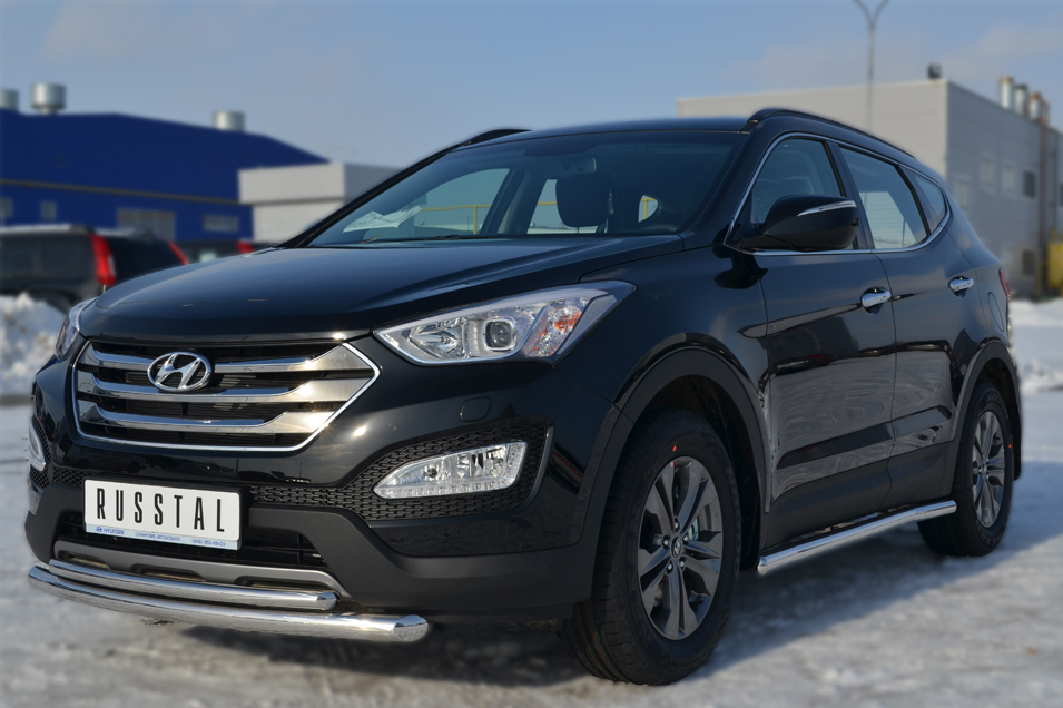 Hyundai Santa Fe 2012-2015 Защита переднего бампера d63/42 (дуга) HSFZ-001215 производится из итальянской нержавеющей высококачественной полированной стали марки AISI 304. Идеально подходит по заводским параметрам, и устанавливается без дополнительных изменений в кузове. Вся продукция сертифицирована. Мы производим аксессуары с 2006 года. В распоряжении компании имеются собственные производственные площадки, поэтому вся работа производится без подрядчиков и посредников.