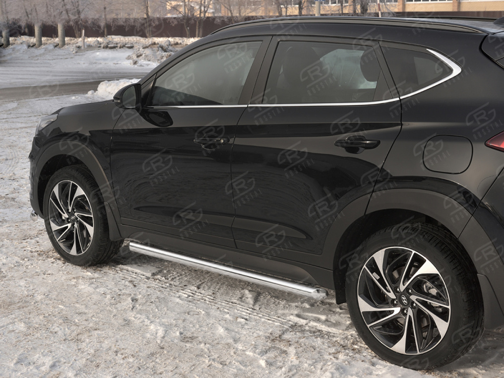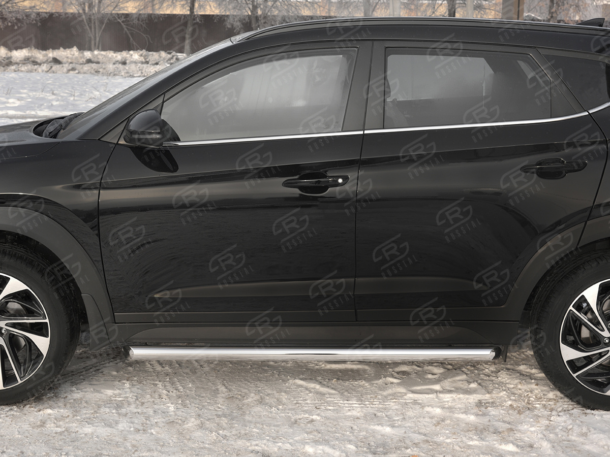 HYUNDAI TUCSON 2018- Пороги труба d63 (вариант 1) HTT-0031001 производится из итальянской нержавеющей высококачественной полированной стали марки AISI 304. Идеально подходит по заводским параметрам, и устанавливается без дополнительных изменений в кузове. Вся продукция сертифицирована. Мы производим аксессуары с 2006 года. В распоряжении компании имеются собственные производственные площадки, поэтому вся работа производится без подрядчиков и посредников.