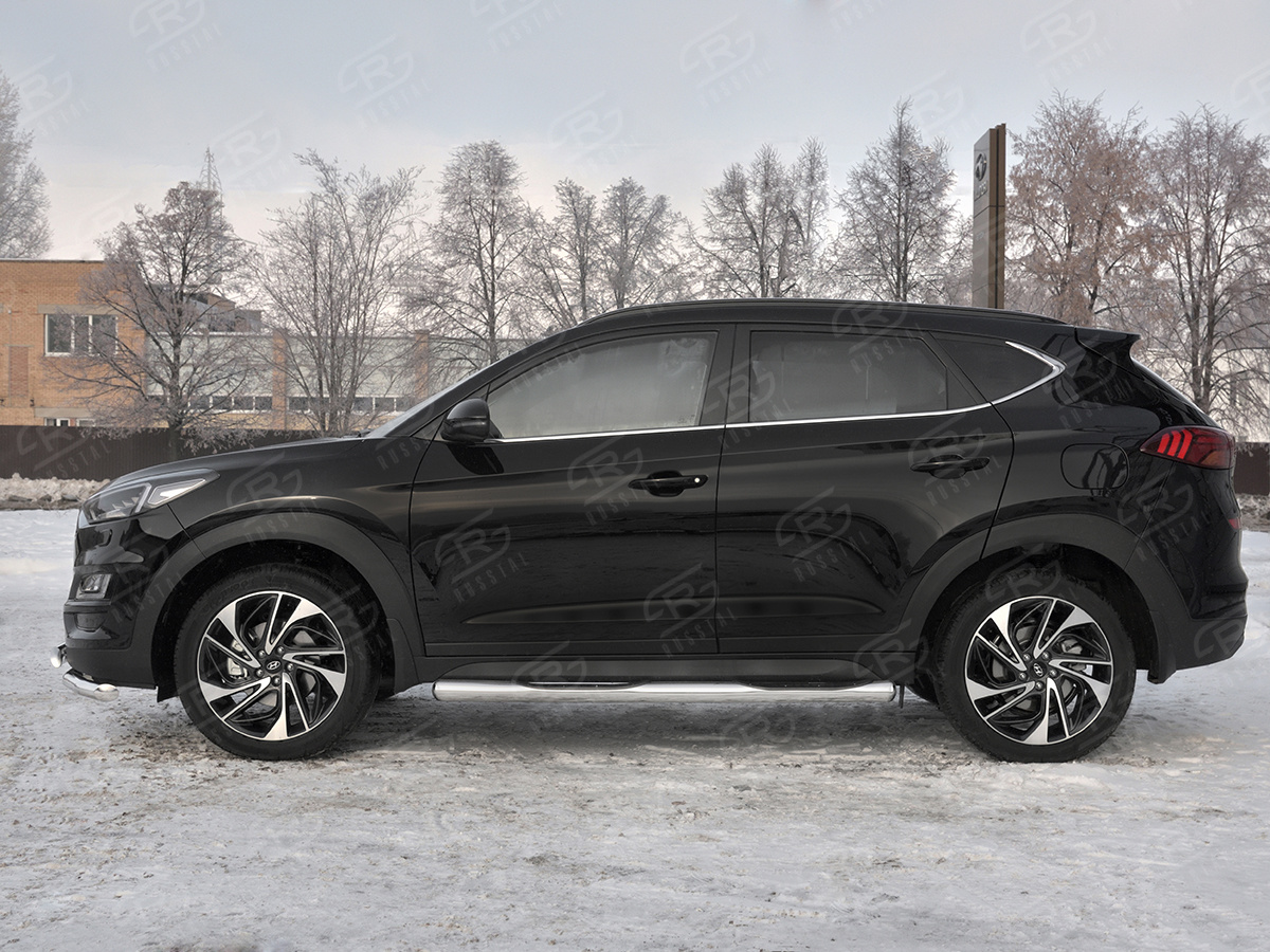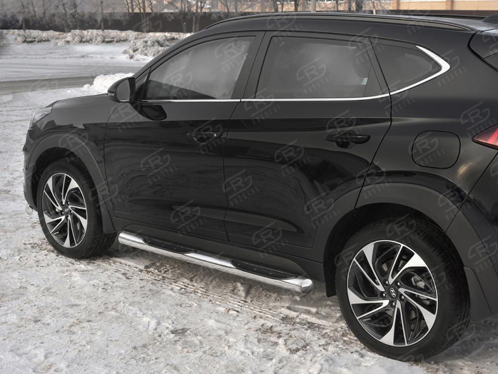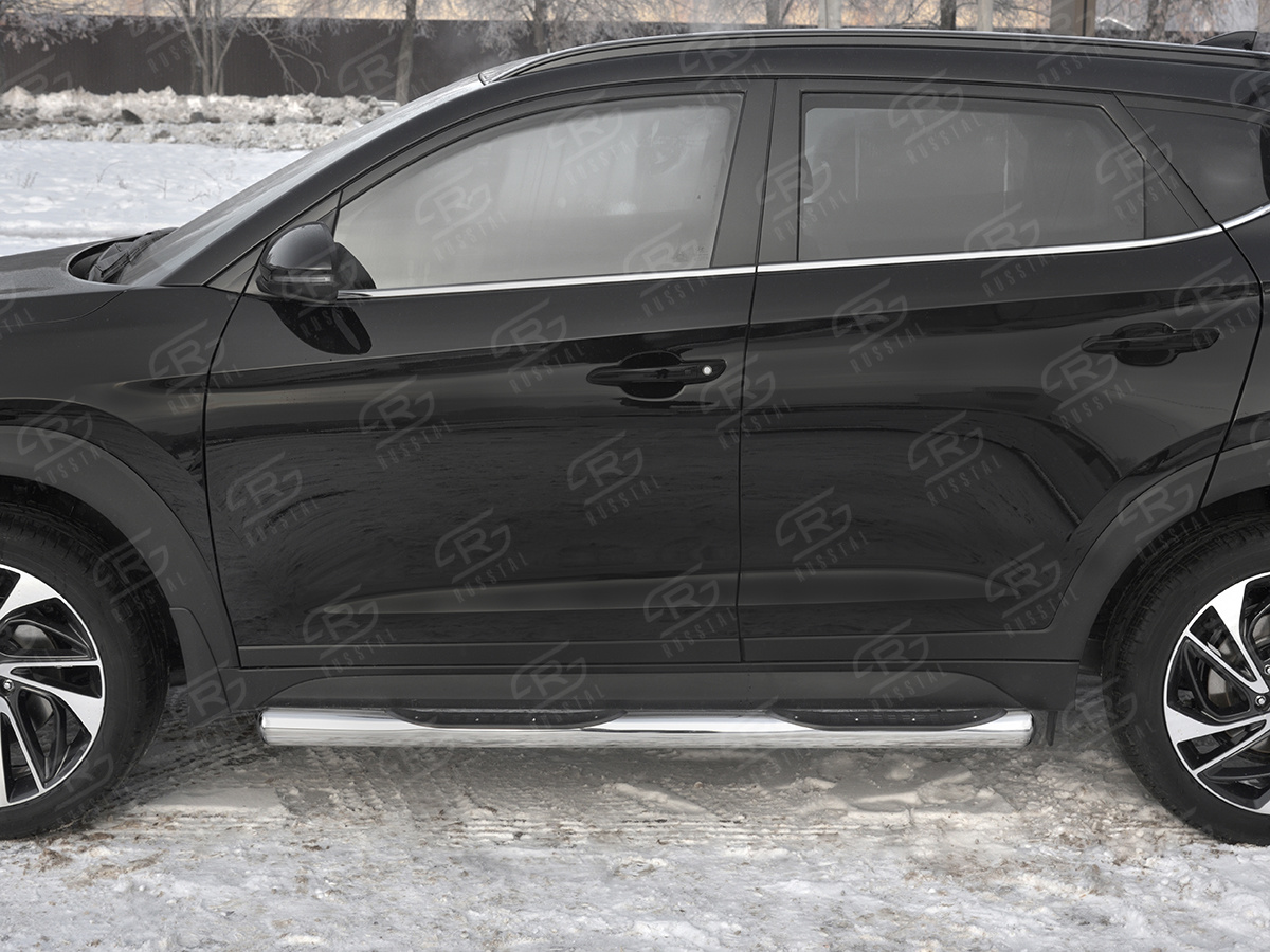 HYUNDAI TUCSON 2018- Пороги труба d76 с накладкой (вариант 3) HTT-0031013 производится из итальянской нержавеющей высококачественной полированной стали марки AISI 304. Идеально подходит по заводским параметрам, и устанавливается без дополнительных изменений в кузове. Вся продукция сертифицирована. Мы производим аксессуары с 2006 года. В распоряжении компании имеются собственные производственные площадки, поэтому вся работа производится без подрядчиков и посредников.