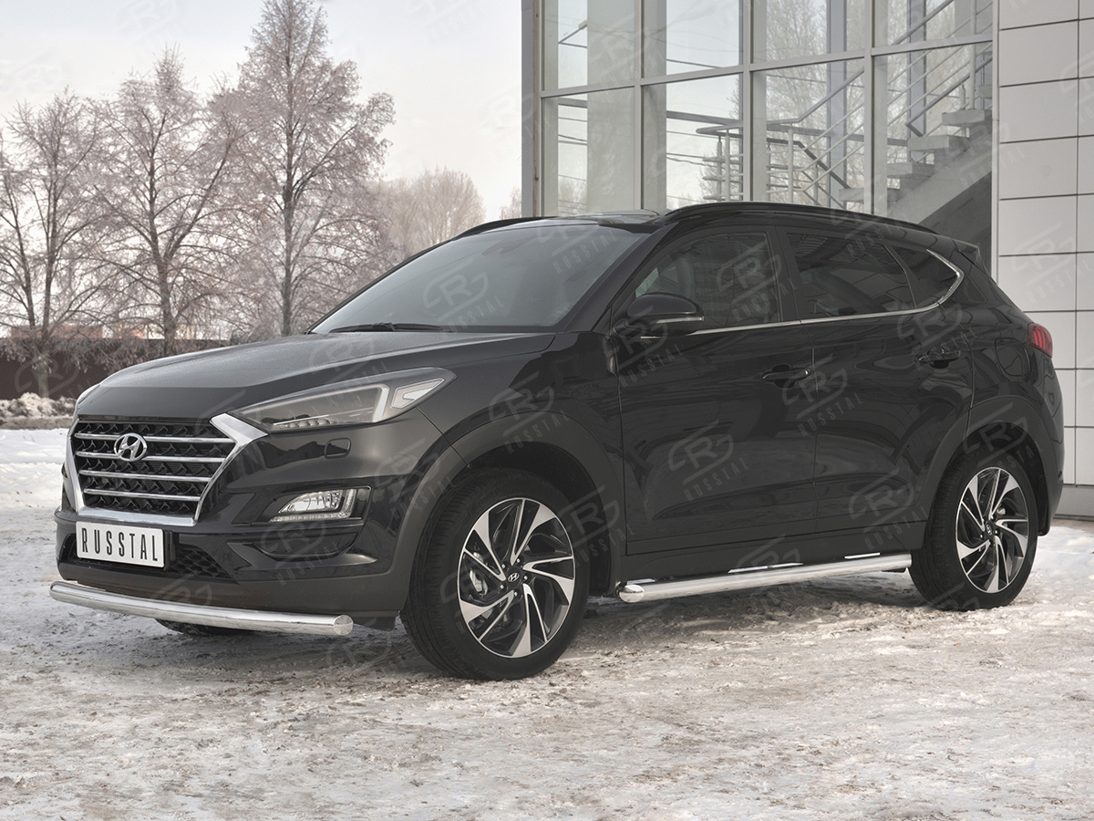 HYUNDAI TUCSON 2018- Защита переднего бампера d63 секции HTZ-003097 производится из итальянской нержавеющей высококачественной полированной стали марки AISI 304. Идеально подходит по заводским параметрам, и устанавливается без дополнительных изменений в кузове. Вся продукция сертифицирована. Мы производим аксессуары с 2006 года. В распоряжении компании имеются собственные производственные площадки, поэтому вся работа производится без подрядчиков и посредников.
