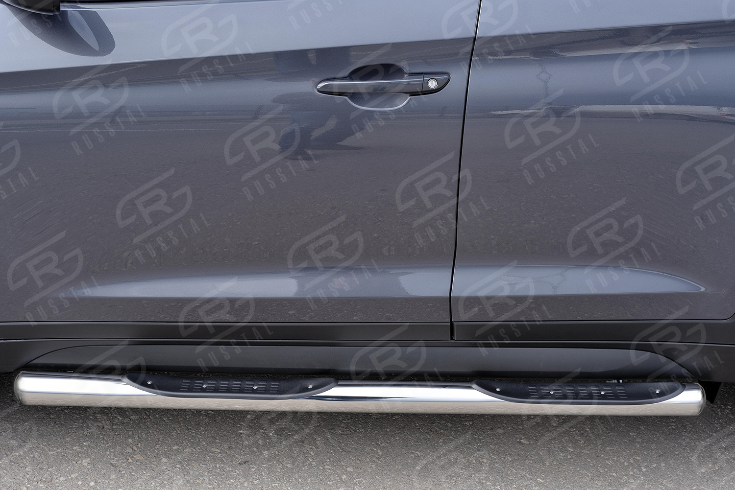 HYUNDAI Tucson 2015-2017 Пороги труба d76 с накладкой (вариант 3) HTT-0022343 производится из итальянской нержавеющей высококачественной полированной стали марки AISI 304. Идеально подходит по заводским параметрам, и устанавливается без дополнительных изменений в кузове. Вся продукция сертифицирована. Мы производим аксессуары с 2006 года. В распоряжении компании имеются собственные производственные площадки, поэтому вся работа производится без подрядчиков и посредников.