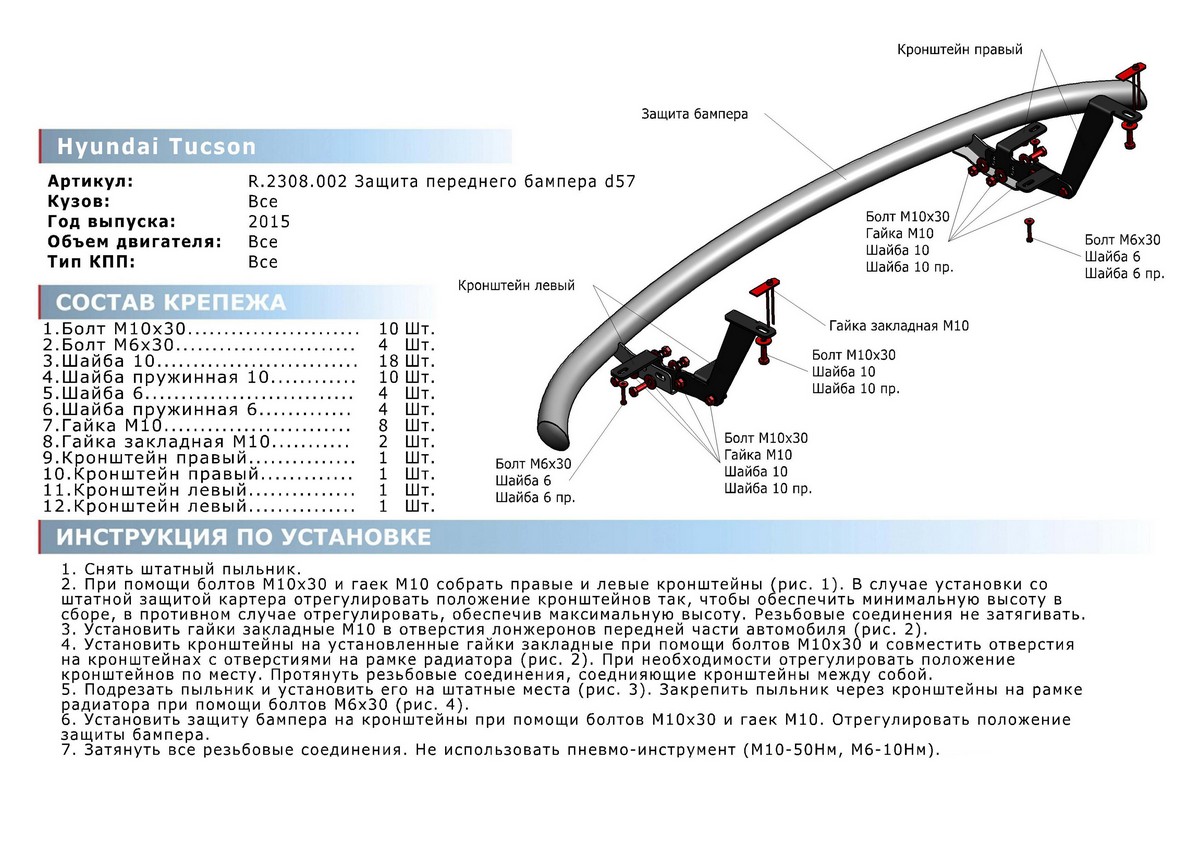 —Защита переднего бампера d57 Hyundai Tucson 2015-