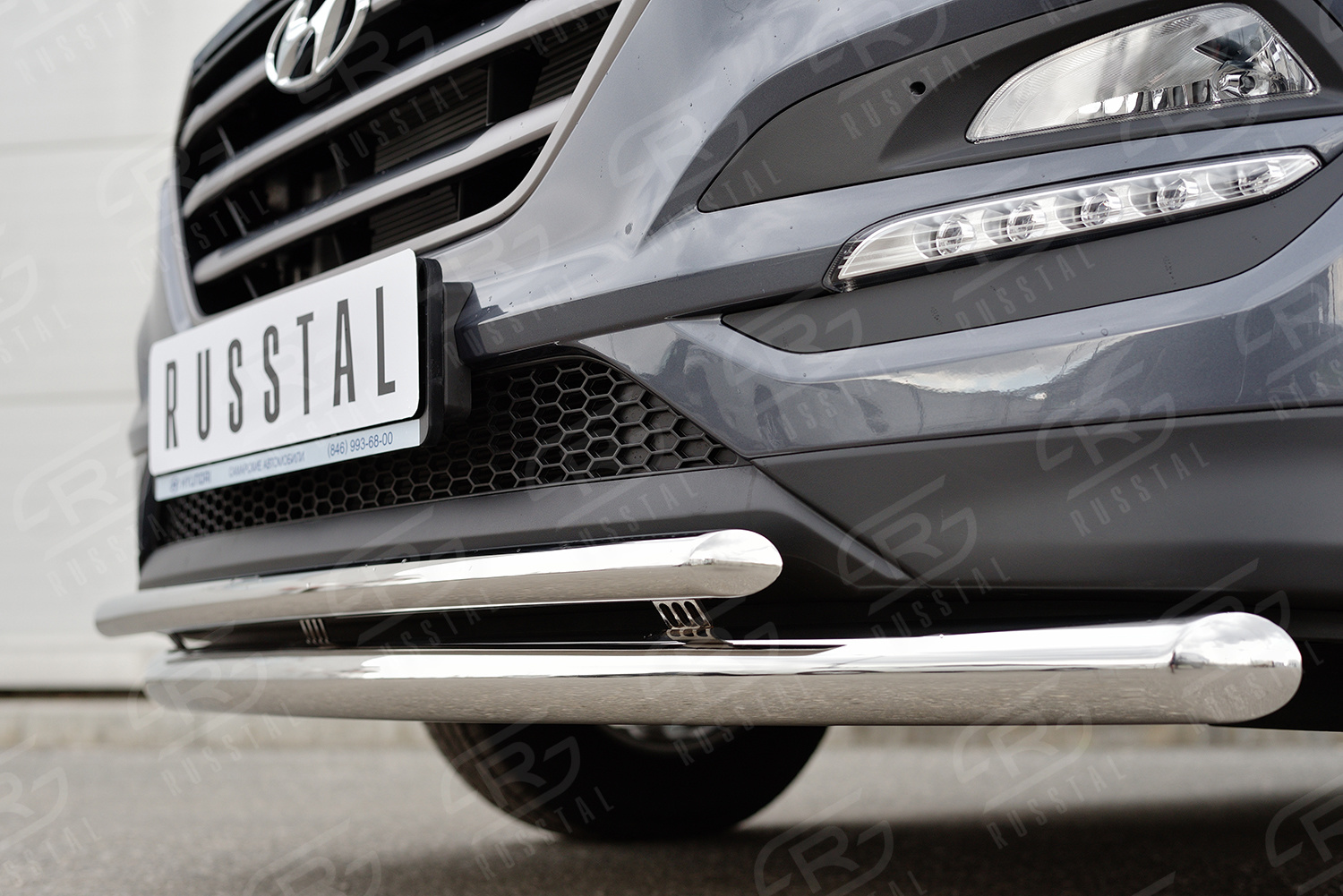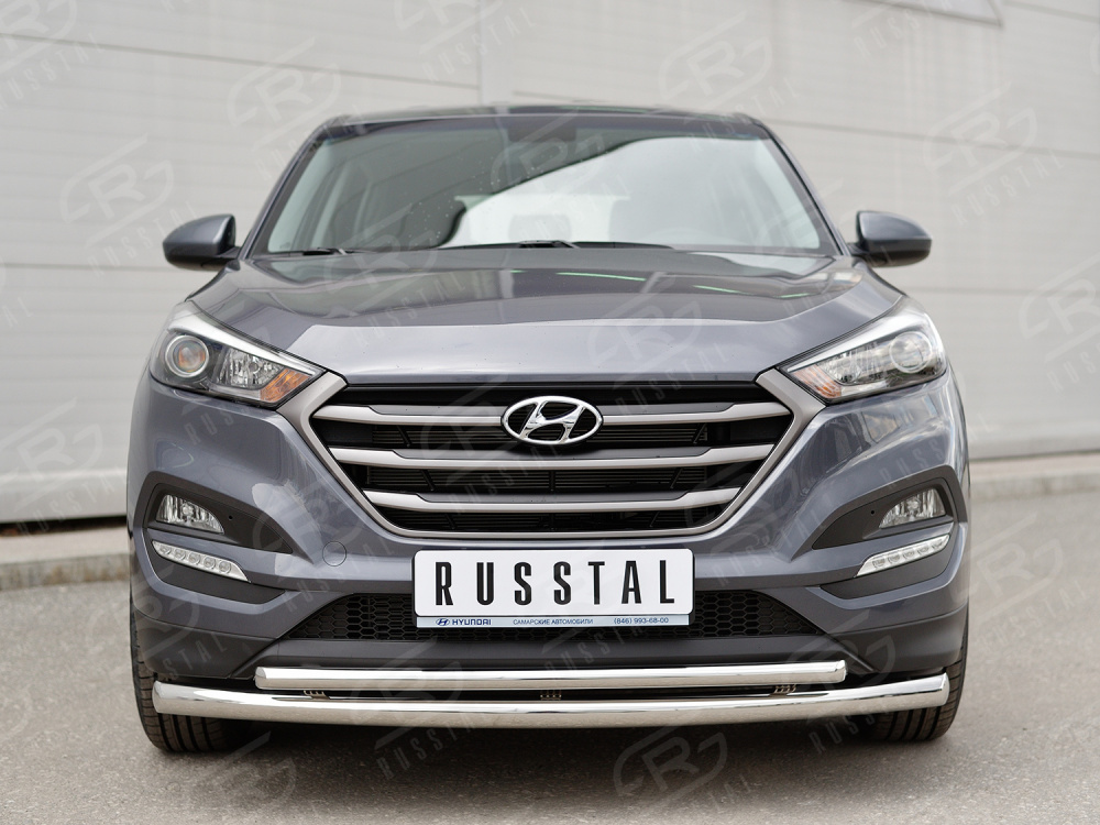 HYUNDAI Tucson 2015-2017 Защита переднего бампера Ф63 дуга-Ф42 дуга HTZ-002229 производится из итальянской нержавеющей высококачественной полированной стали марки AISI 304. Идеально подходит по заводским параметрам, и устанавливается без дополнительных изменений в кузове. Вся продукция сертифицирована. Мы производим аксессуары с 2006 года. В распоряжении компании имеются собственные производственные площадки, поэтому вся работа производится без подрядчиков и посредников.