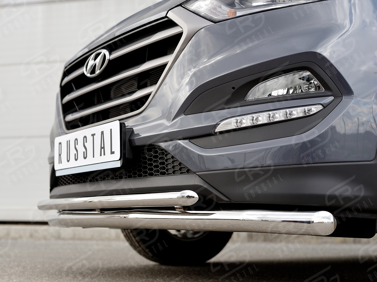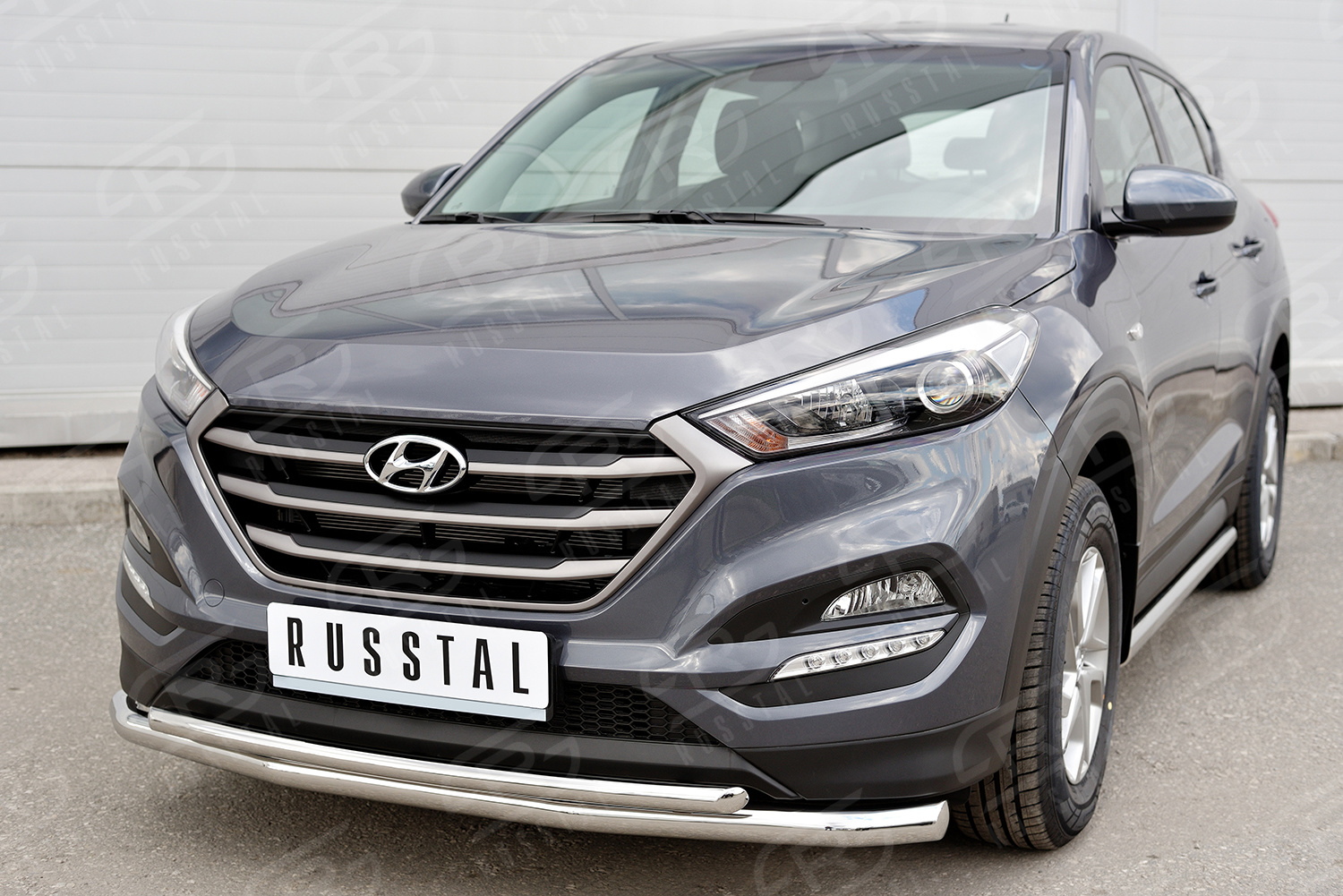HYUNDAI Tucson 2015-2017 Защита переднего бампера Ф63 секция-Ф42 дуга HTZ-002233 производится из итальянской нержавеющей высококачественной полированной стали марки AISI 304. Идеально подходит по заводским параметрам, и устанавливается без дополнительных изменений в кузове. Вся продукция сертифицирована. Мы производим аксессуары с 2006 года. В распоряжении компании имеются собственные производственные площадки, поэтому вся работа производится без подрядчиков и посредников.