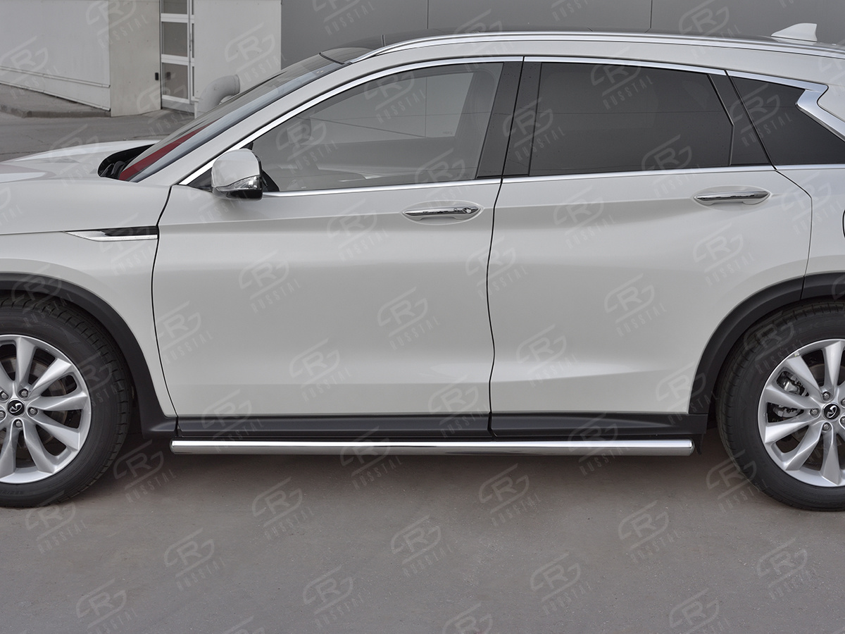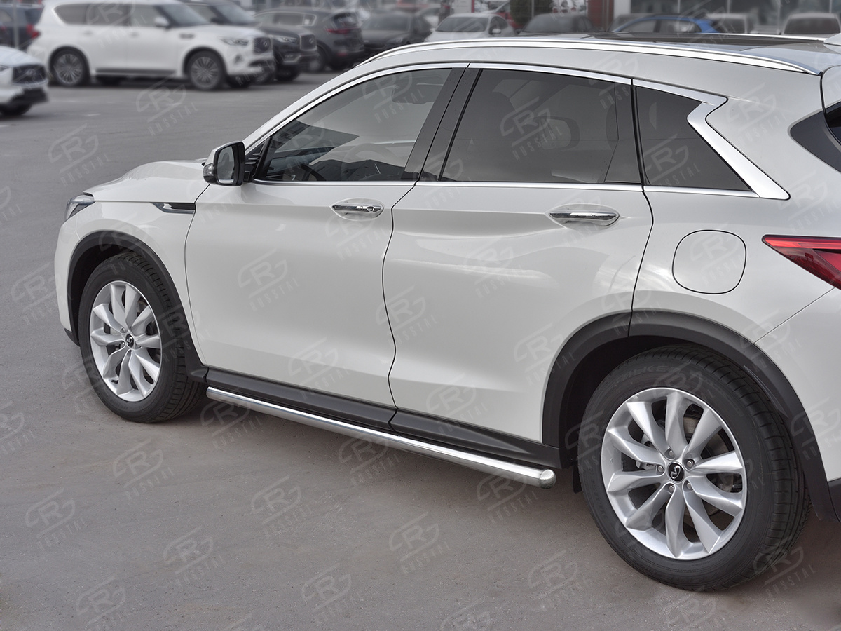 INFINITI QX50 2018- Пороги труба d63 (вариант 3) IQX5T-0030833 производится из итальянской нержавеющей высококачественной полированной стали марки AISI 304. Идеально подходит по заводским параметрам, и устанавливается без дополнительных изменений в кузове. Вся продукция сертифицирована. Мы производим аксессуары с 2006 года. В распоряжении компании имеются собственные производственные площадки, поэтому вся работа производится без подрядчиков и посредников.