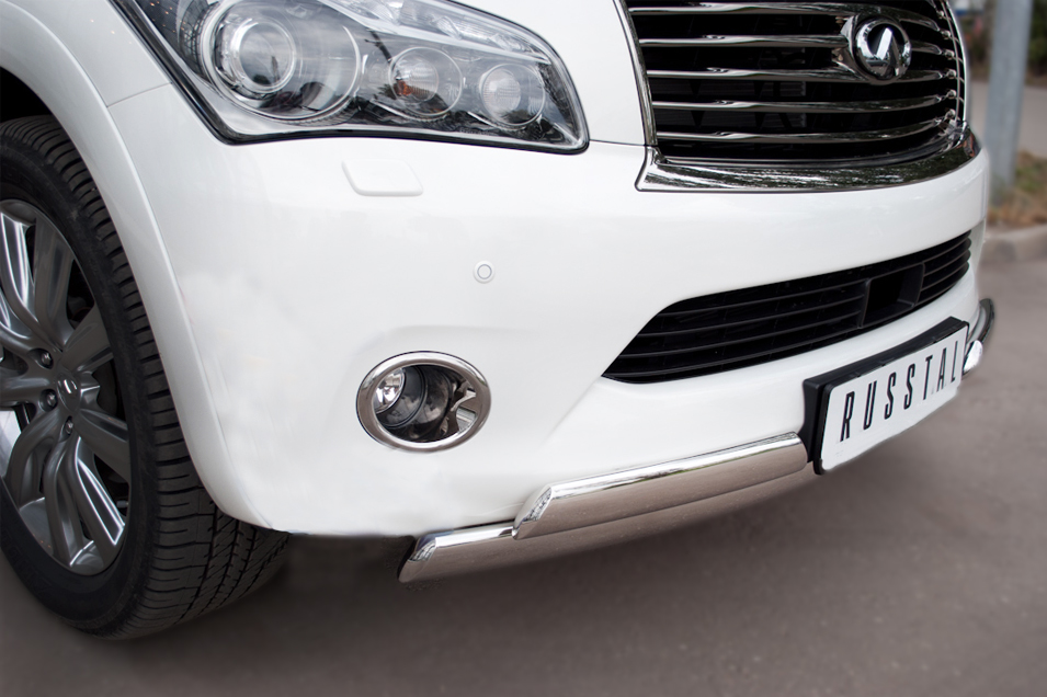Infiniti QX 56 2010-2014 Защита переднего бампера 75х42_(75х42)х2 овалы INZ-000844 производится из итальянской нержавеющей высококачественной полированной стали марки AISI 304. Идеально подходит по заводским параметрам, и устанавливается без дополнительных изменений в кузове. Вся продукция сертифицирована. Мы производим аксессуары с 2006 года. В распоряжении компании имеются собственные производственные площадки, поэтому вся работа производится без подрядчиков и посредников.