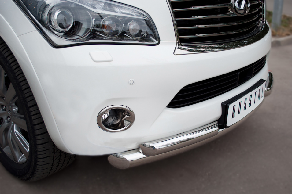 Infiniti QX 56 2010-2014 защита переднего бампера d76 63х2 INZ-000847 производится из итальянской нержавеющей высококачественной полированной стали марки AISI 304. Идеально подходит по заводским параметрам, и устанавливается без дополнительных изменений в кузове. Вся продукция сертифицирована. Мы производим аксессуары с 2006 года. В распоряжении компании имеются собственные производственные площадки, поэтому вся работа производится без подрядчиков и посредников.