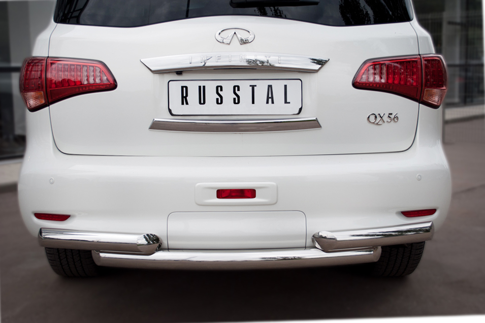 Infiniti QX 56 2010-2014 Защита заднего бампера 76_76х2 INZ-000850 производится из итальянской нержавеющей высококачественной полированной стали марки AISI 304. Идеально подходит по заводским параметрам, и устанавливается без дополнительных изменений в кузове. Вся продукция сертифицирована. Мы производим аксессуары с 2006 года. В распоряжении компании имеются собственные производственные площадки, поэтому вся работа производится без подрядчиков и посредников.