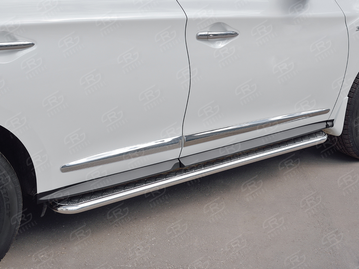 INFINITI QX60 2016- Пороги труба d42 с листом (Лист алюм, проф.сталь) (вариант 2) IQXL-0026812 производится из итальянской нержавеющей высококачественной полированной стали марки AISI 304. Идеально подходит по заводским параметрам, и устанавливается без дополнительных изменений в кузове. Вся продукция сертифицирована. Мы производим аксессуары с 2006 года. В распоряжении компании имеются собственные производственные площадки, поэтому вся работа производится без подрядчиков и посредников.