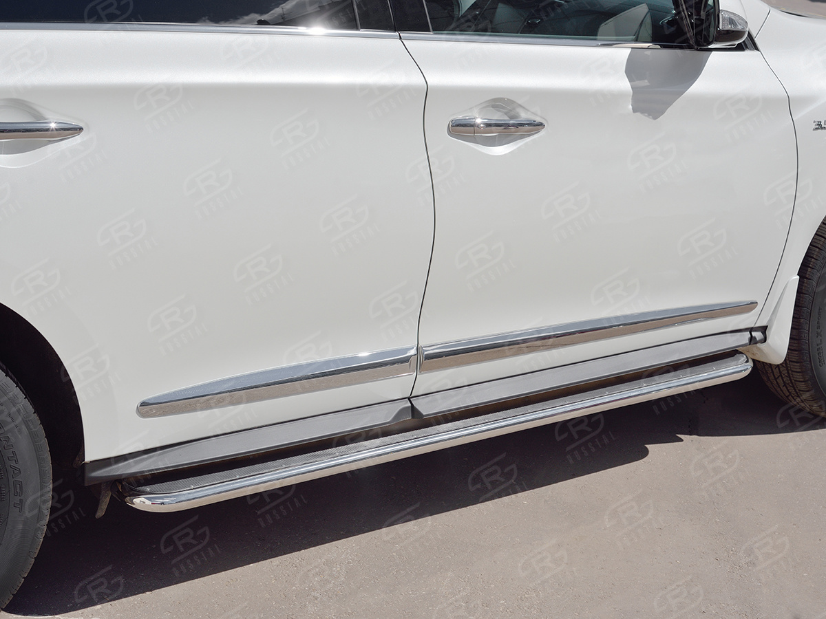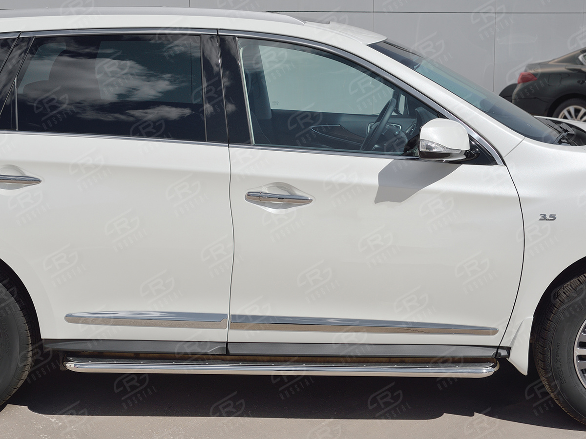 INFINITI QX60 2016- Пороги труба d42 с листом (Лист нерж, проф. нерж) (вариант 3) IQXL-0026813 производится из итальянской нержавеющей высококачественной полированной стали марки AISI 304. Идеально подходит по заводским параметрам, и устанавливается без дополнительных изменений в кузове. Вся продукция сертифицирована. Мы производим аксессуары с 2006 года. В распоряжении компании имеются собственные производственные площадки, поэтому вся работа производится без подрядчиков и посредников.