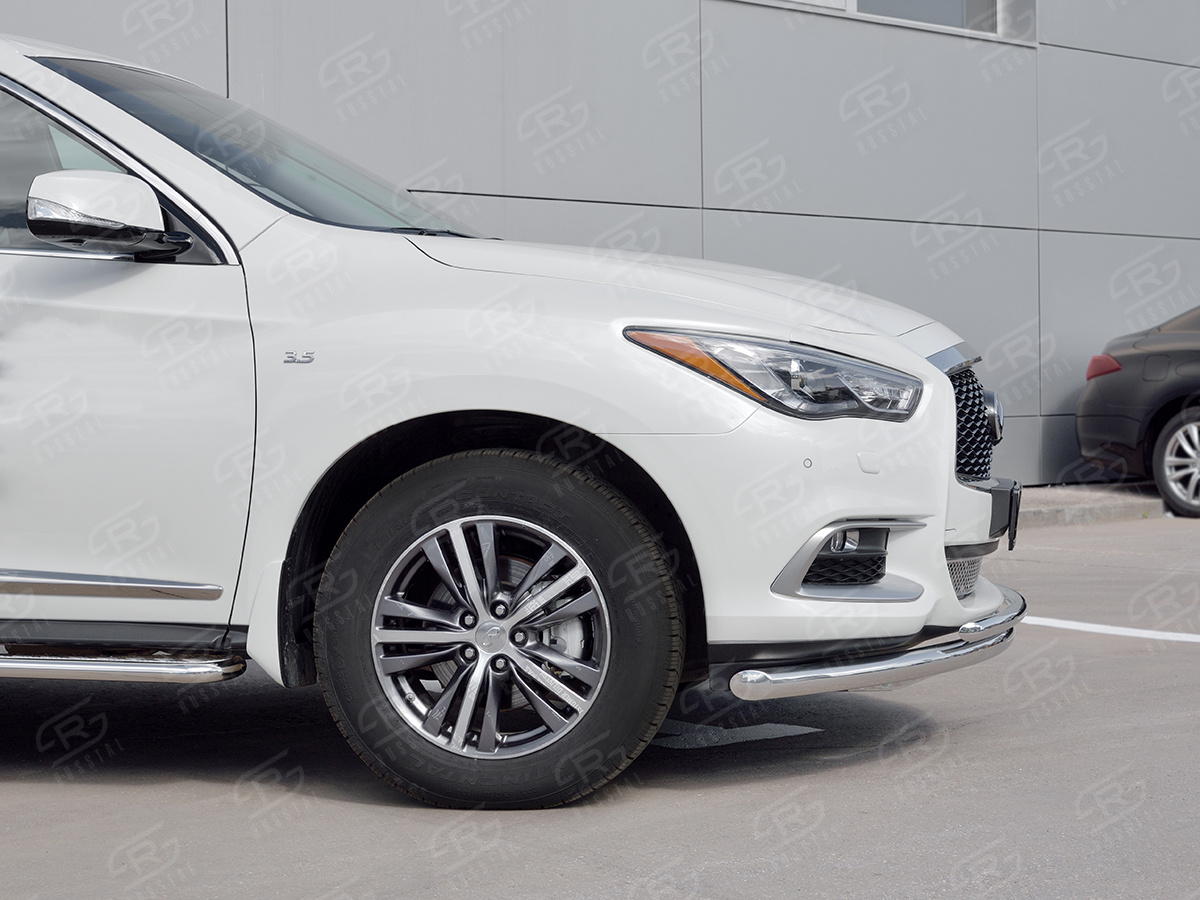 INFINITI QX60 2016- Защита переднего бампера d63 дуга-d42 дуга IQXZ-002676 производится из итальянской нержавеющей высококачественной полированной стали марки AISI 304. Идеально подходит по заводским параметрам, и устанавливается без дополнительных изменений в кузове. Вся продукция сертифицирована. Мы производим аксессуары с 2006 года. В распоряжении компании имеются собственные производственные площадки, поэтому вся работа производится без подрядчиков и посредников.