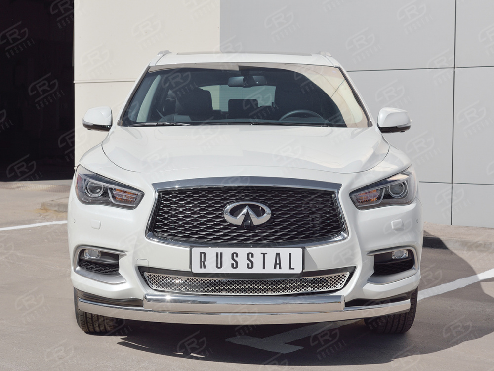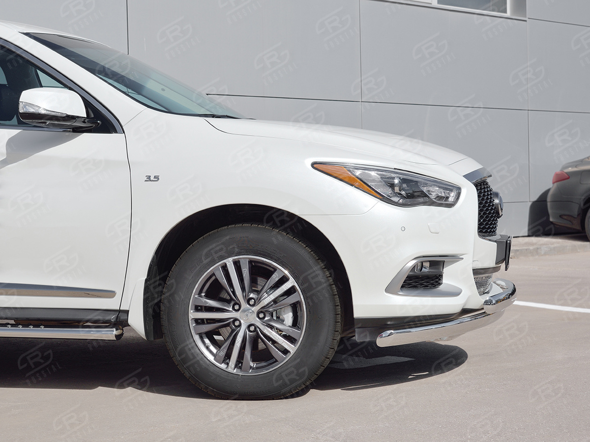 INFINITI QX60 2016- Защита переднего бампера d75х42 дуга-75х42 дуга IQXZ-002674 производится из итальянской нержавеющей высококачественной полированной стали марки AISI 304. Идеально подходит по заводским параметрам, и устанавливается без дополнительных изменений в кузове. Вся продукция сертифицирована. Мы производим аксессуары с 2006 года. В распоряжении компании имеются собственные производственные площадки, поэтому вся работа производится без подрядчиков и посредников.
