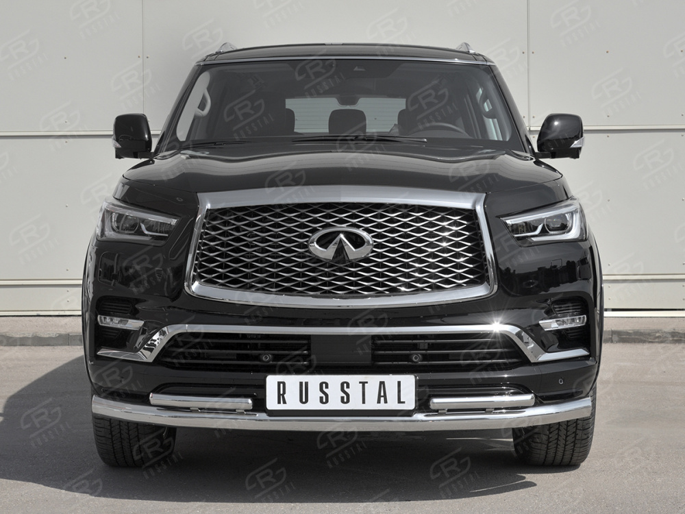 INFINITI QX80 2018- Защита переднего бампера d76 секции-d42 секции IQX8Z-003010 производится из итальянской нержавеющей высококачественной полированной стали марки AISI 304. Идеально подходит по заводским параметрам, и устанавливается без дополнительных изменений в кузове. Вся продукция сертифицирована. Мы производим аксессуары с 2006 года. В распоряжении компании имеются собственные производственные площадки, поэтому вся работа производится без подрядчиков и посредников.