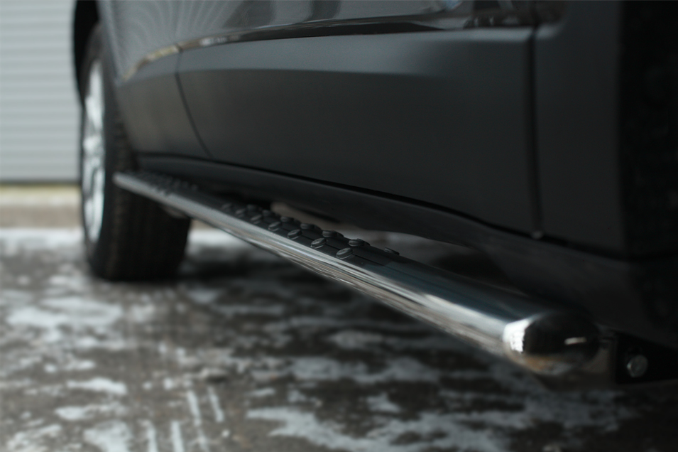 Jeep Cherokee 2014- Пороги труба 75х42 овал с проступью JCO-001988 производится из итальянской нержавеющей высококачественной полированной стали марки AISI 304. Идеально подходит по заводским параметрам, и устанавливается без дополнительных изменений в кузове. Вся продукция сертифицирована. Мы производим аксессуары с 2006 года. В распоряжении компании имеются собственные производственные площадки, поэтому вся работа производится без подрядчиков и посредников.