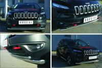 Jeep Cherokee Trailhawk 2014- Защита переднего бампера d63 (секции) d42 (дуга) JCZ-001996 производится из итальянской нержавеющей высококачественной полированной стали марки AISI 304. Идеально подходит по заводским параметрам, и устанавливается без дополнительных изменений в кузове. Вся продукция сертифицирована. Мы производим аксессуары с 2006 года. В распоряжении компании имеются собственные производственные площадки, поэтому вся работа производится без подрядчиков и посредников.