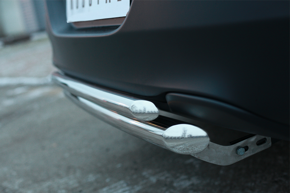 Jeep Cherokee 2014- Защита заднего бампера d63 (дуга) d42 (дуга) JCZ-001992 производится из итальянской нержавеющей высококачественной полированной стали марки AISI 304. Идеально подходит по заводским параметрам, и устанавливается без дополнительных изменений в кузове. Вся продукция сертифицирована. Мы производим аксессуары с 2006 года. В распоряжении компании имеются собственные производственные площадки, поэтому вся работа производится без подрядчиков и посредников.