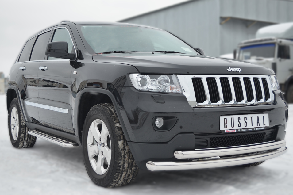 Jeep Grand Cherokee 2012 Защита переднего бампера d76/63 (дуги) JGZ-001193 производится из итальянской нержавеющей высококачественной полированной стали марки AISI 304. Идеально подходит по заводским параметрам, и устанавливается без дополнительных изменений в кузове. Вся продукция сертифицирована. Мы производим аксессуары с 2006 года. В распоряжении компании имеются собственные производственные площадки, поэтому вся работа производится без подрядчиков и посредников.