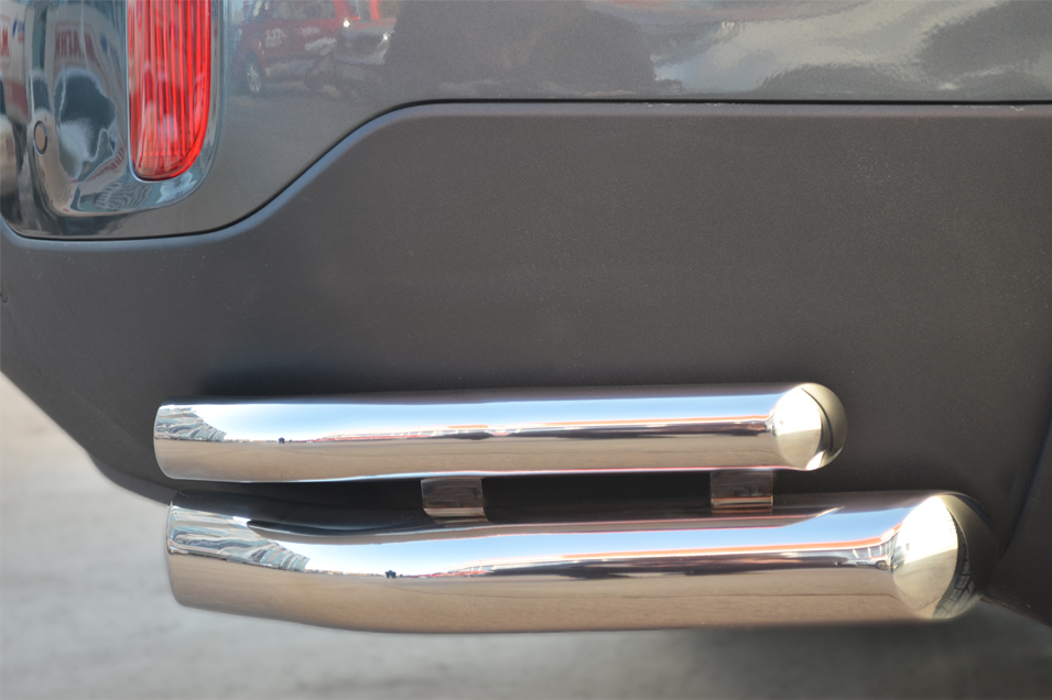 KIA Sorento 2012- Защита заднего бампера уголки d63/42 KIZ-001274 производится из итальянской нержавеющей высококачественной полированной стали марки AISI 304. Идеально подходит по заводским параметрам, и устанавливается без дополнительных изменений в кузове. Вся продукция сертифицирована. Мы производим аксессуары с 2006 года. В распоряжении компании имеются собственные производственные площадки, поэтому вся работа производится без подрядчиков и посредников.