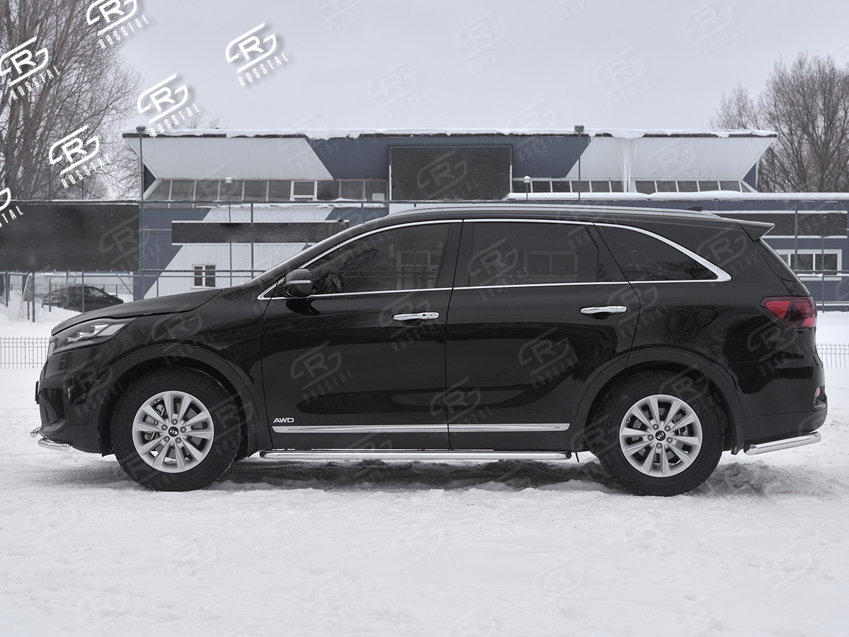 KIA SORENTO PRIME 2018- Пороги труба d42 с листом (Лист алюм, проф. нерж) (вариант 1) KSPL-0031401 производится из итальянской нержавеющей высококачественной полированной стали марки AISI 304. Идеально подходит по заводским параметрам, и устанавливается без дополнительных изменений в кузове. Вся продукция сертифицирована. Мы производим аксессуары с 2006 года. В распоряжении компании имеются собственные производственные площадки, поэтому вся работа производится без подрядчиков и посредников.